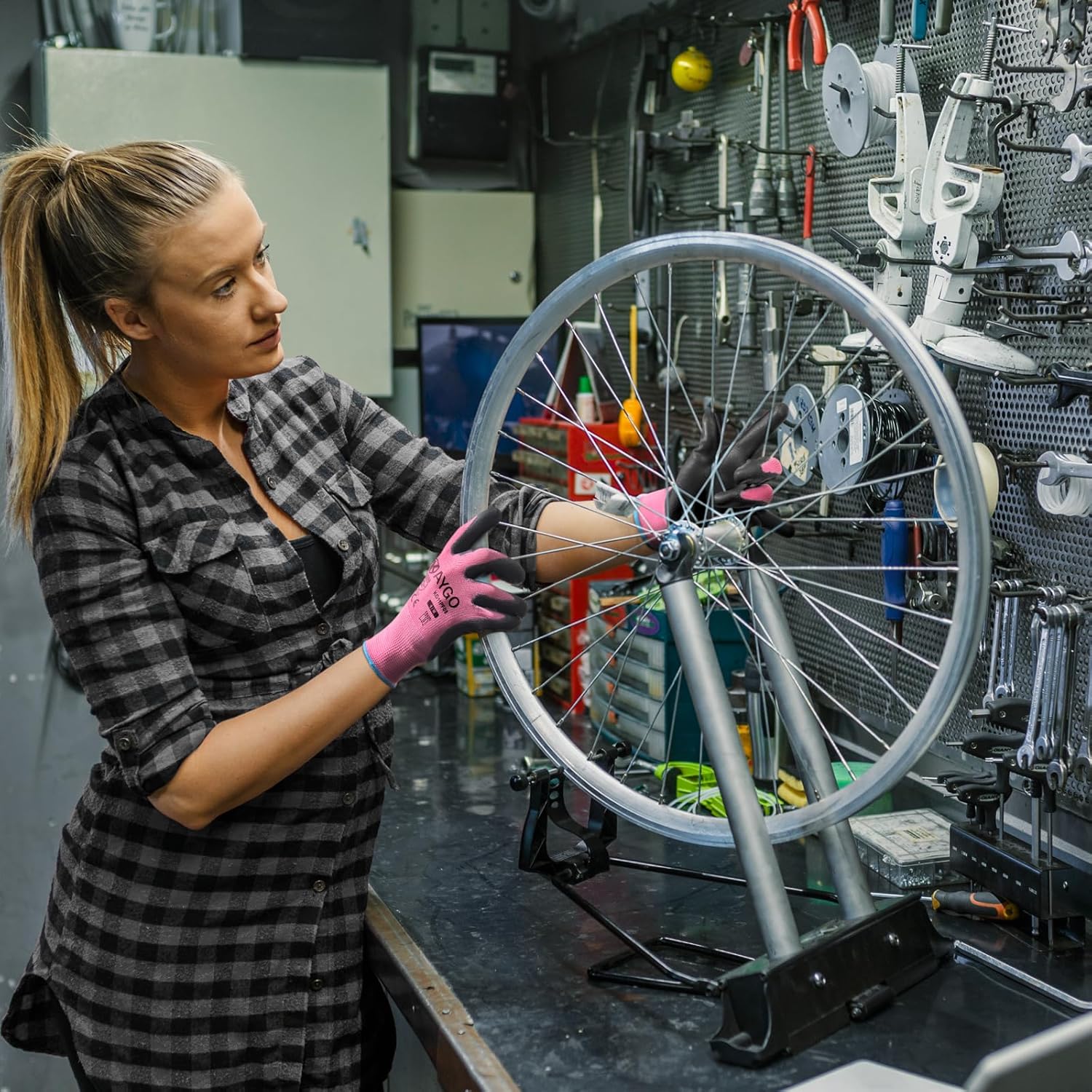 KAYGO Safety Work Gloves PU Coated-12 Pairs, KG11P Seamless Knit Glove with Polyurethane Coated Smooth Grip on Palm & Fingers, for Men and Women, Ideal for General Duty Work,Pink,Large