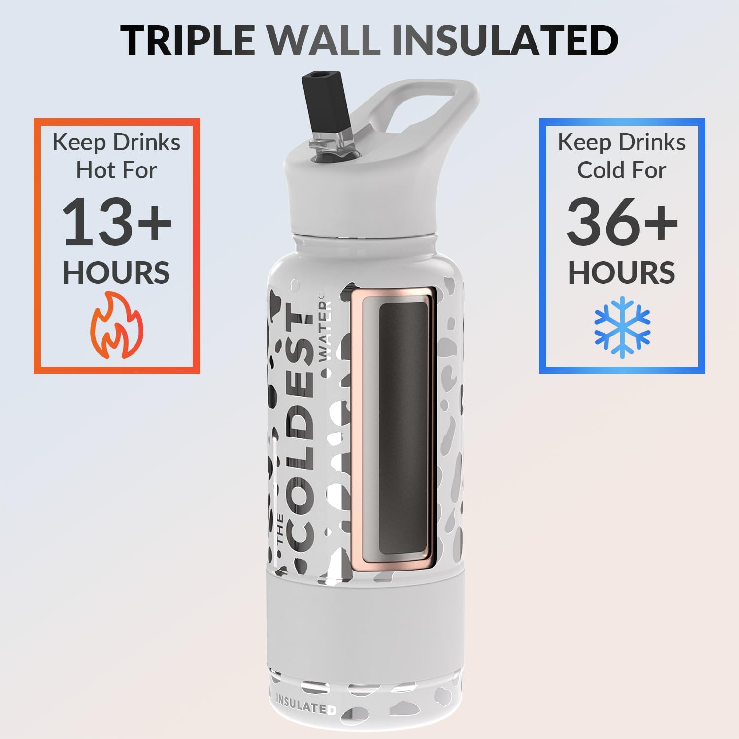 - 𝐀𝐃𝐕𝐀𝐍𝐂𝐄𝐃 𝐈𝐍𝐒𝐔𝐋𝐀𝐓𝐈𝐎𝐍 𝐓𝐄𝐂𝐇𝐍𝐎𝐋𝐎𝐆𝐘: Coldest reusable water bottles are your solution to tepid sips. With the world's first fully insulated straw lid, this bottle keeps your drink cold for 36+ hours and hot for 13+ hours, ensuring your drink stays at the perfect temperature throughout the day. Cold-tested against 50+ leading brands, its superior performance guarantees an unmatched experience. Upgrade now to the Coldest Water Bottle and bid farewell to temperature woes.