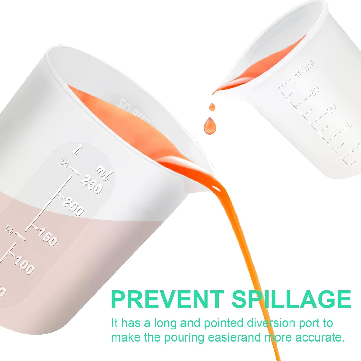 - 【CUPS EASY TO CLEAN】All our measuring cups are made of silicone, smooth surface, non-stick and flexible, easy to clean. Suitable for measuring and mixing epoxy resin, acrylic paint, glue, various liquids.
