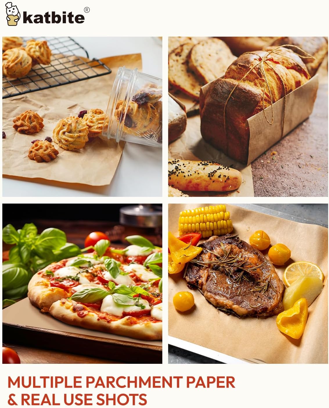 Katbite 75Pcs Unbleached Parchment Paper Sheets 12x16IN, Pre-Cut Heavy Duty Parchment Baking Paper, Non-Stick Half Sheet Brown Baking Parchment Paper for Air Fryer, Baking Cookie [Advanced Series]