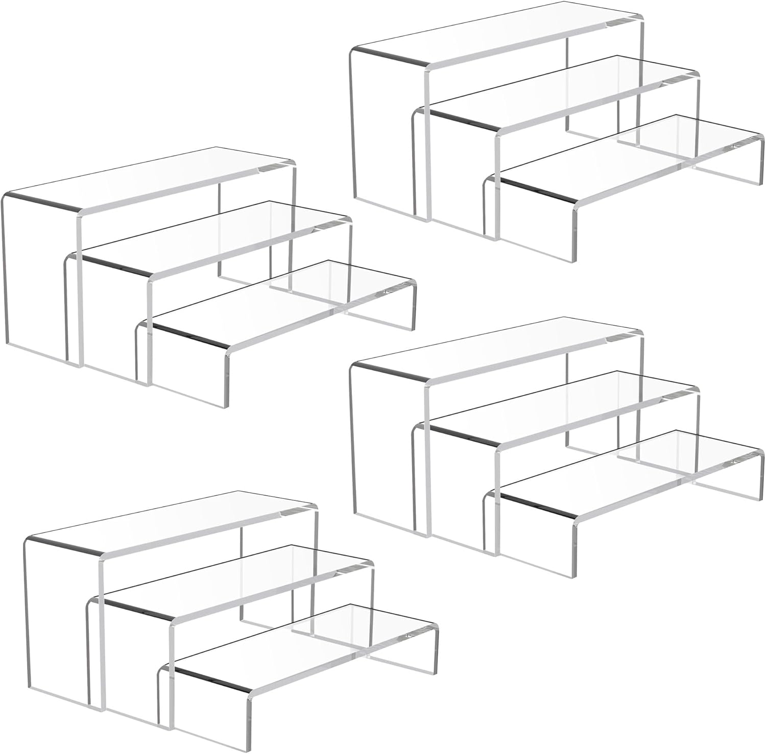Goabroa 12 Pcs Clear Acrylic Risers Display Stands, 3 Tiers 4mm Thick Transparent Acrylic Shelves Ideal for Collectibles Stand, Party Cake Dessert Holder, Floating Visual Pop Figure Display Shelves