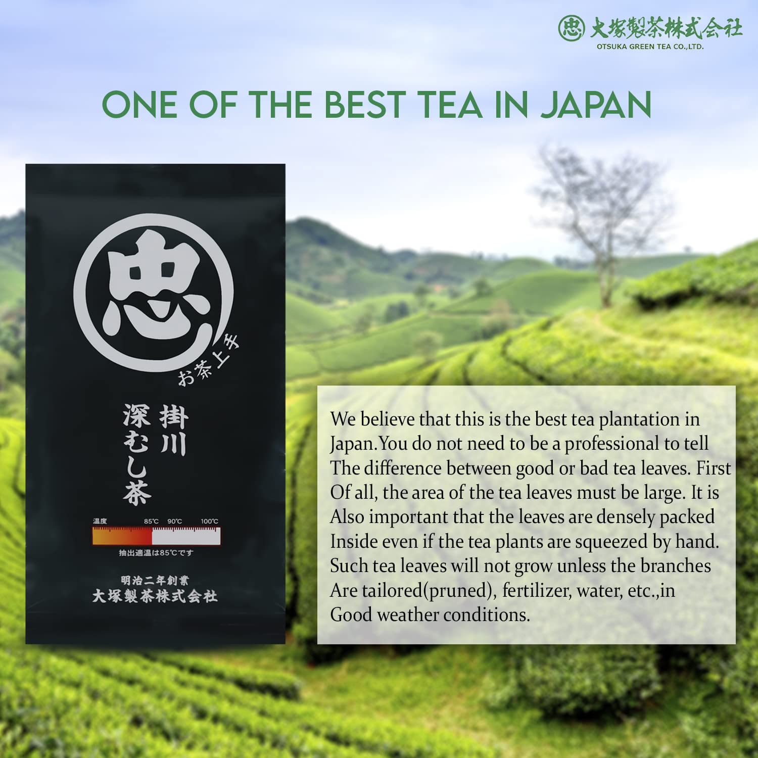 - OTSUKA GREEN TEA CO: Situated in the western region of Shizuoka prefecture, our company possesses a green tee plantation in the Nissakahigashiyama region having the soil most suitable for cultivating green tea in the eastern part of Kakegawa city boasting of No. 1 green tea yield in Japan. In the Edo era, the cultivation land was granted to us by Kazutoyo Yamanouchi, the lord of the Kakegawa castle and it has been succeeded to up to now, our company has a history of over 140 years.