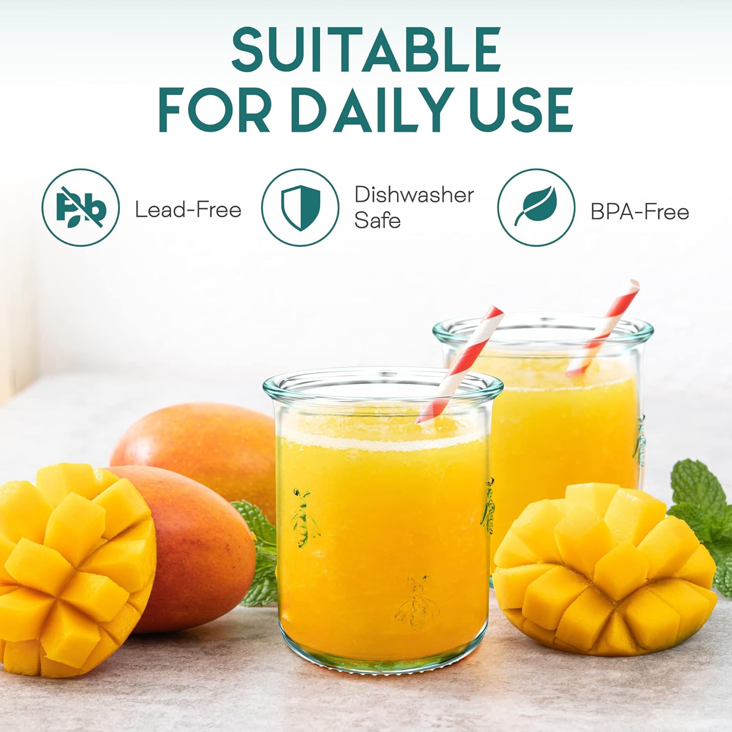 - Bee Design - Features an embossed bee design, each glass has raised bee reliefs around the glass.