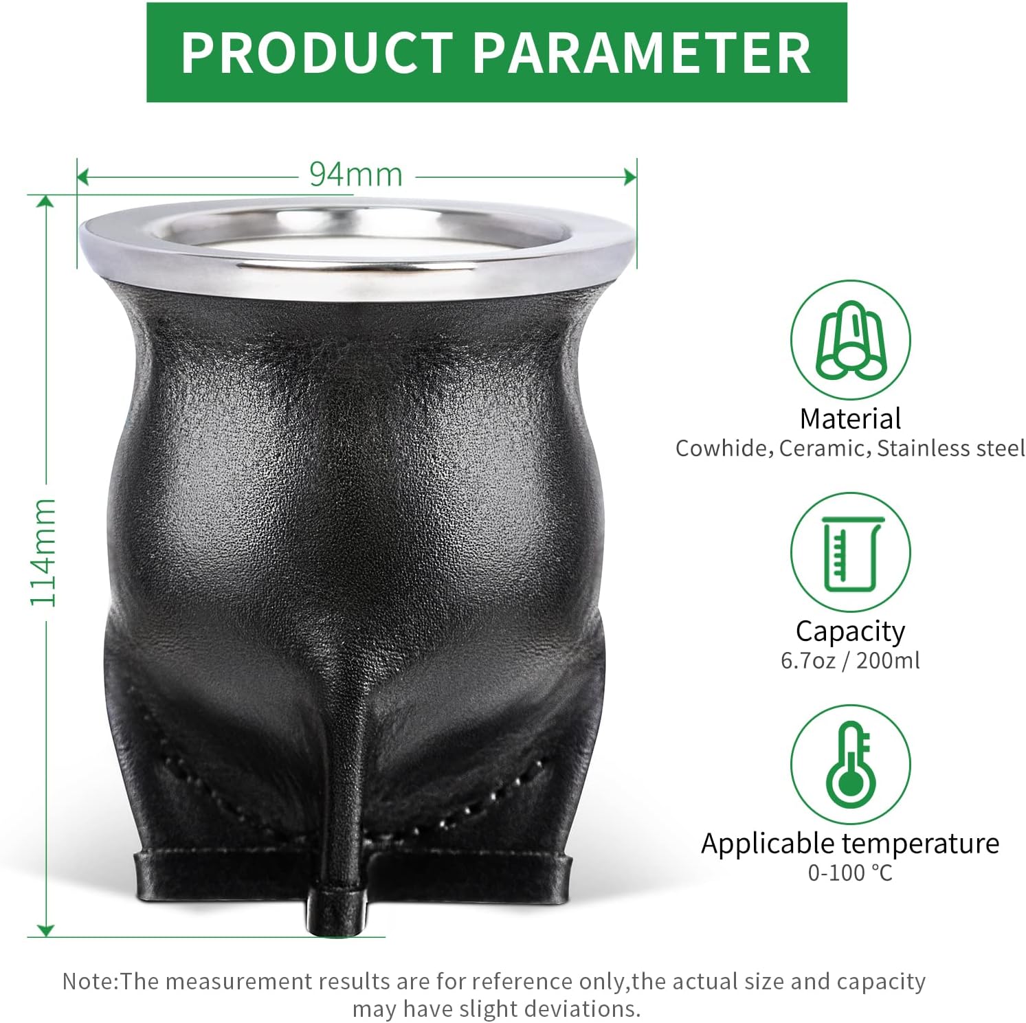 - 【The main design of mate cup】CUOPRU mate tea cup has ceramic inner struction for anti scald, the outer layer made in leather, and the cup mouth is designed with 304 stainless steel. which can prevent different types of corrosion well.