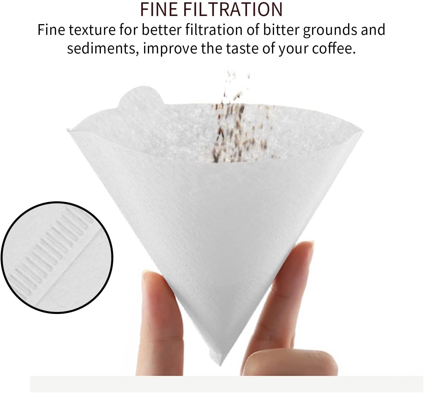 - [High Quality]: Our coffee filter is made from 100% biodegradable natural paper. It has four advantages: no log bleaching, no smell, no adhesive, and no residue. It can reduce the damage to the original taste of coffee, health, and hygiene. And it will be safer and more secure when you use it
