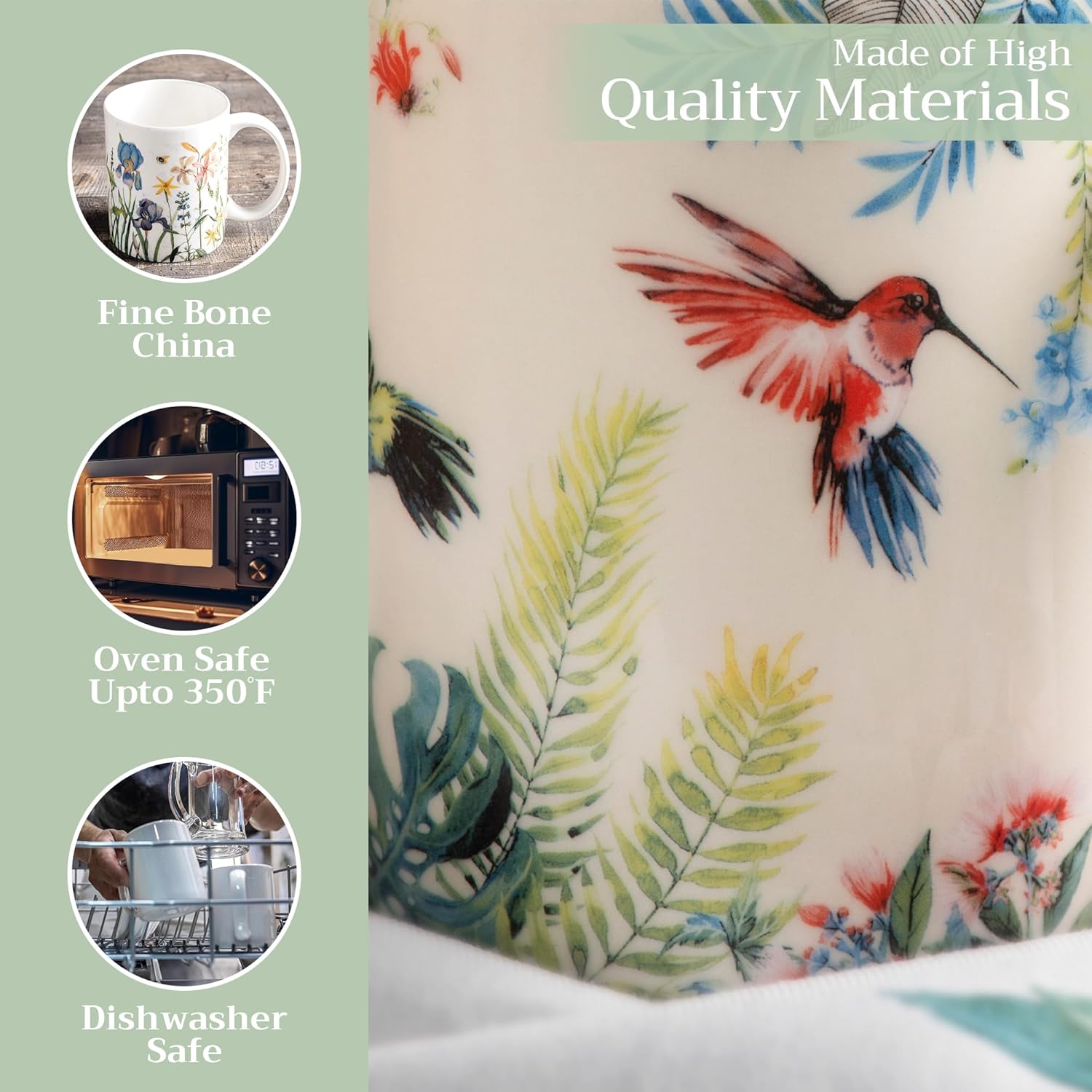 Maison d' Hermine Coffee Mug with Handles Fine Bone China Mugs Pack of One Tea Cups for Hot Beverages Cappuccino Latte Home Restaurant Office Perfect for Gift (Tropiques - Colibris, 15 Ounce)