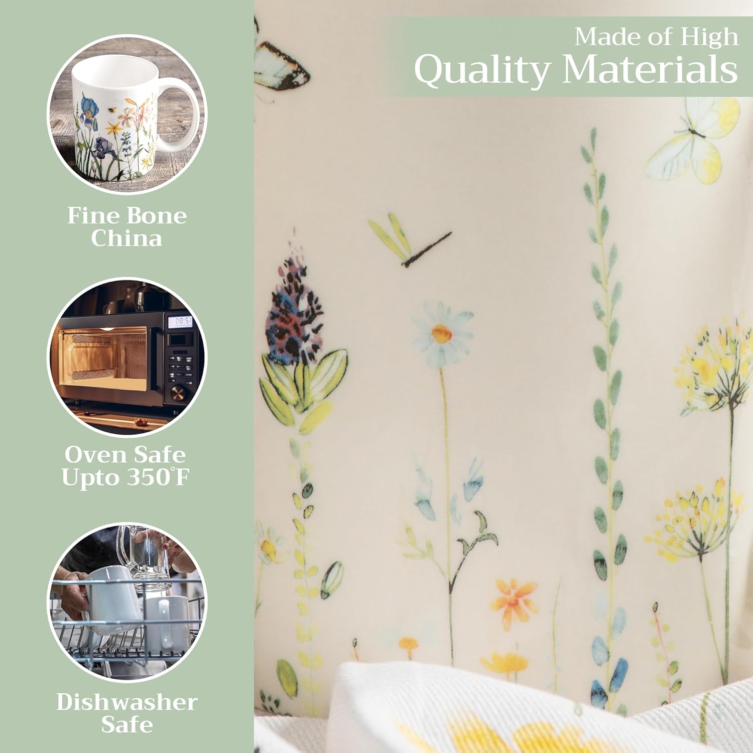 Maison d' Hermine Coffee Mug with Handles Fine Bone China Mugs Pack of One Tea Cups for Hot Beverages Cappuccino Latte Home Restaurant Office Perfect for Gift (Botanical Fresh - Meadow, 15 Ounce)