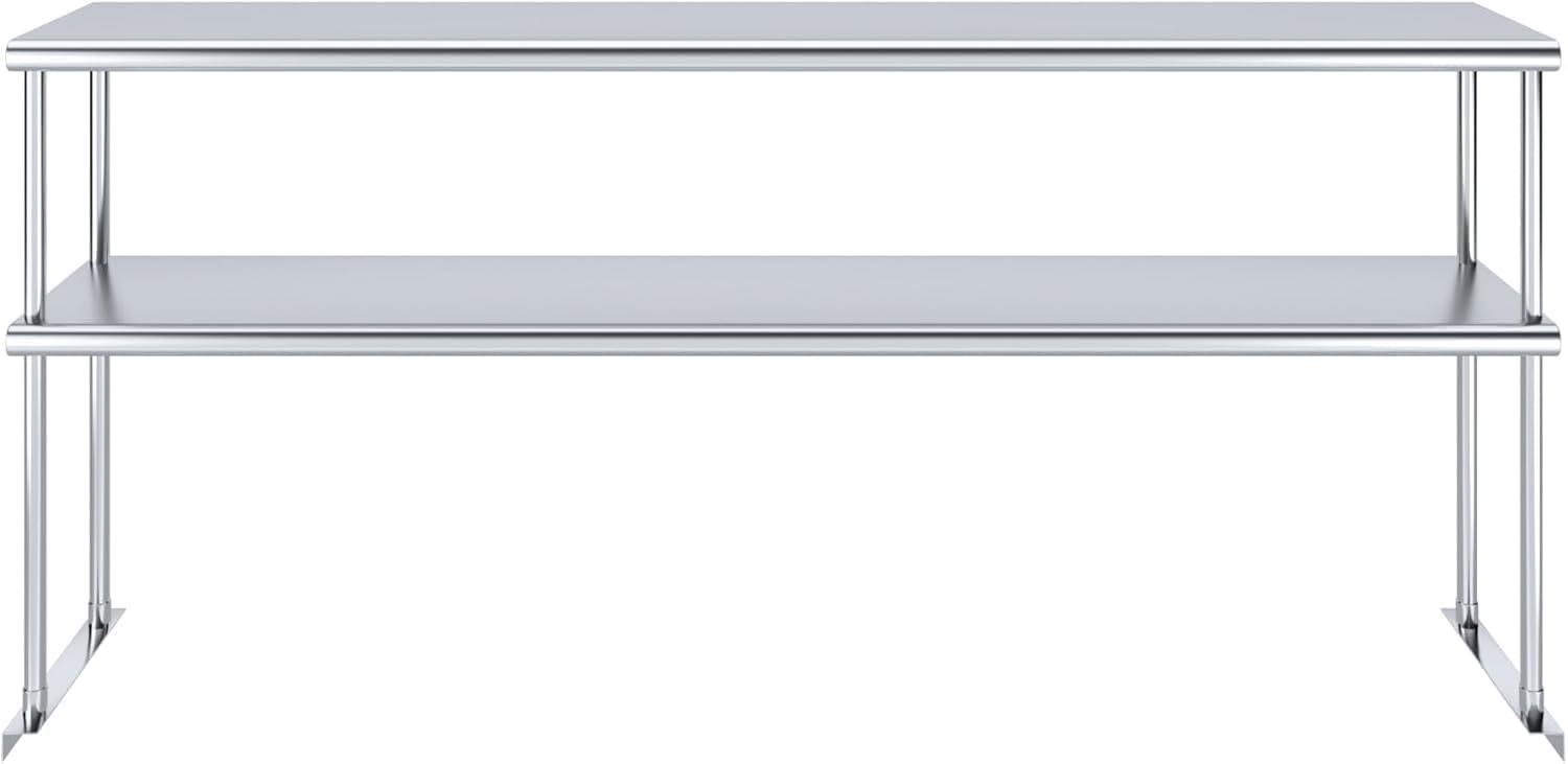 - This stainless steel double overshelves provide a stable and sanitary surface to store kitchen accessories, boxes, tools, cleaning equipment, and more. This NSF-certified table meets strict standards for public health protection and safety. The core structure of each overshelf is stainless, made of 18 Gauge galvanized steel, guaranteeing a lifetime of durability & reliability in the highest volume environments.