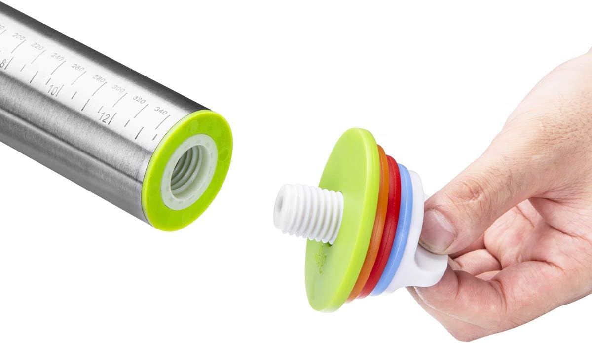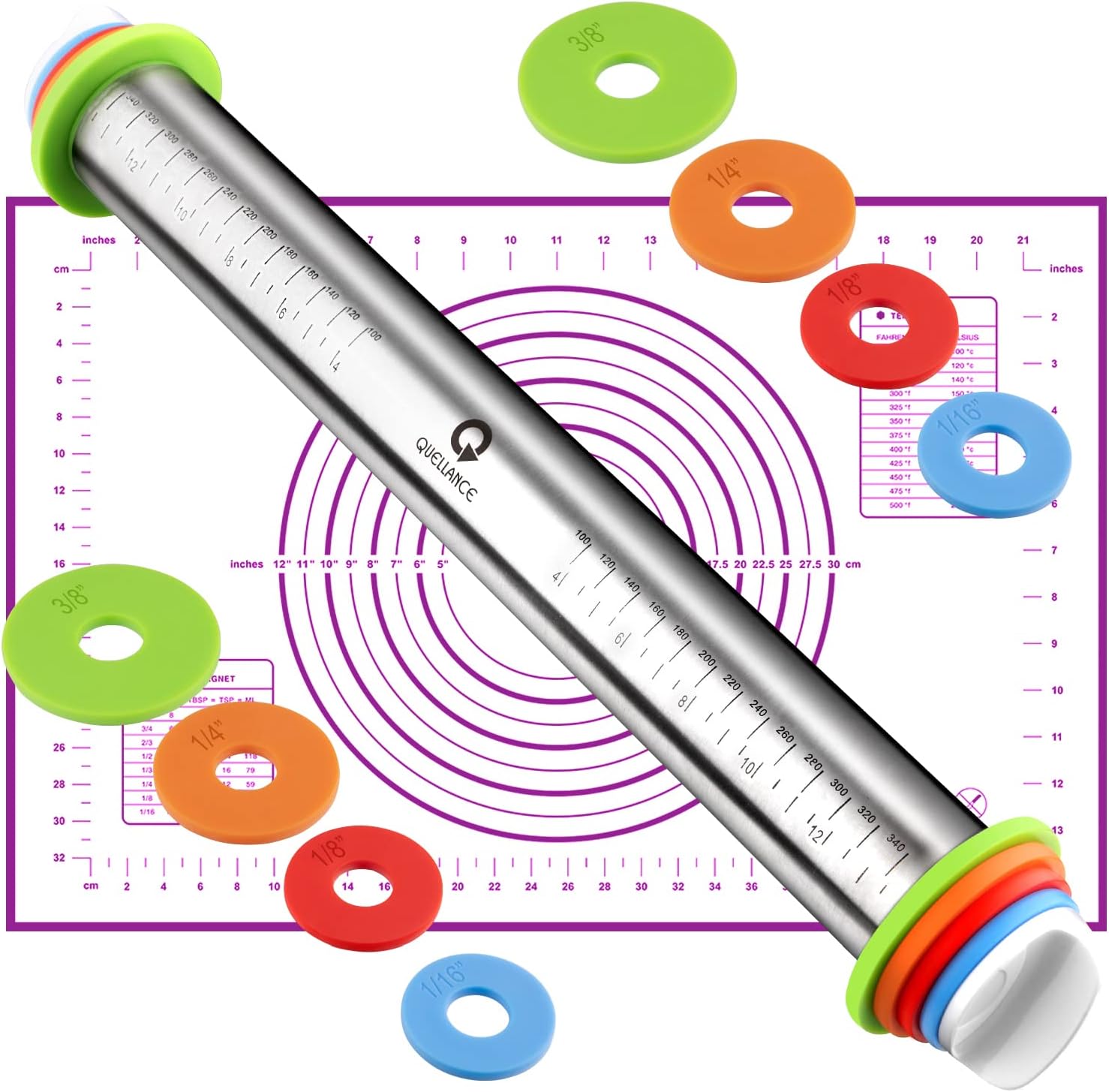 - YOUR PERFECT HOMEMADE HELPER - 4 sizes removable rings: 1/16, 1/8, 1/4, and 3/8 inch (2mm/4mm/6mm/10mm). Quellance adjustable rolling pin is the perfect tool and companion in baking and cooking. Easy to knead dough to the intended thickness for a novice or an old hand.