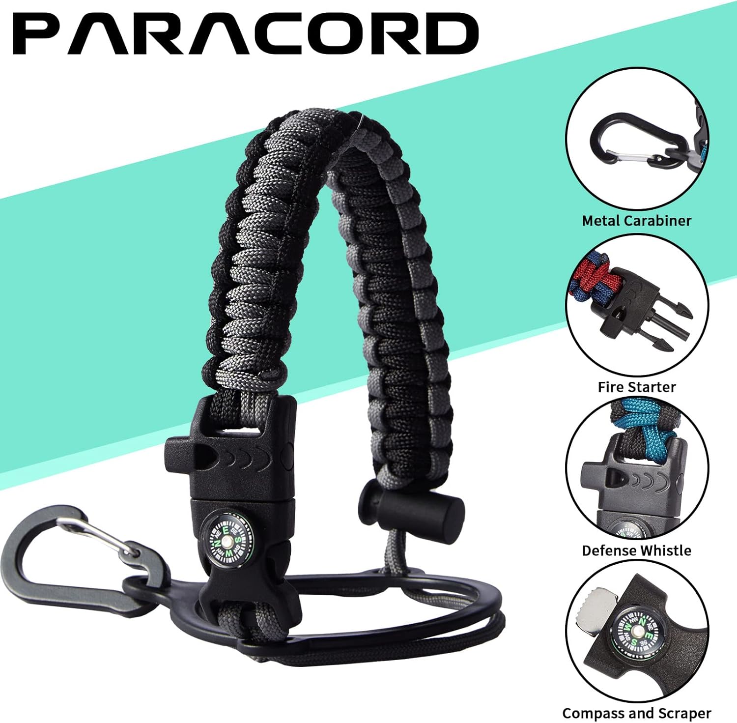 - UNIQUE PARACORD—Perfect Accessories: bright color paracord matches the flask water bottle to give you a youthful vibe while adding a personal style. It comes with a compass, safety loop, metal carabiner, flint, igniter, and whistle to become your survival tool for your wild adventures