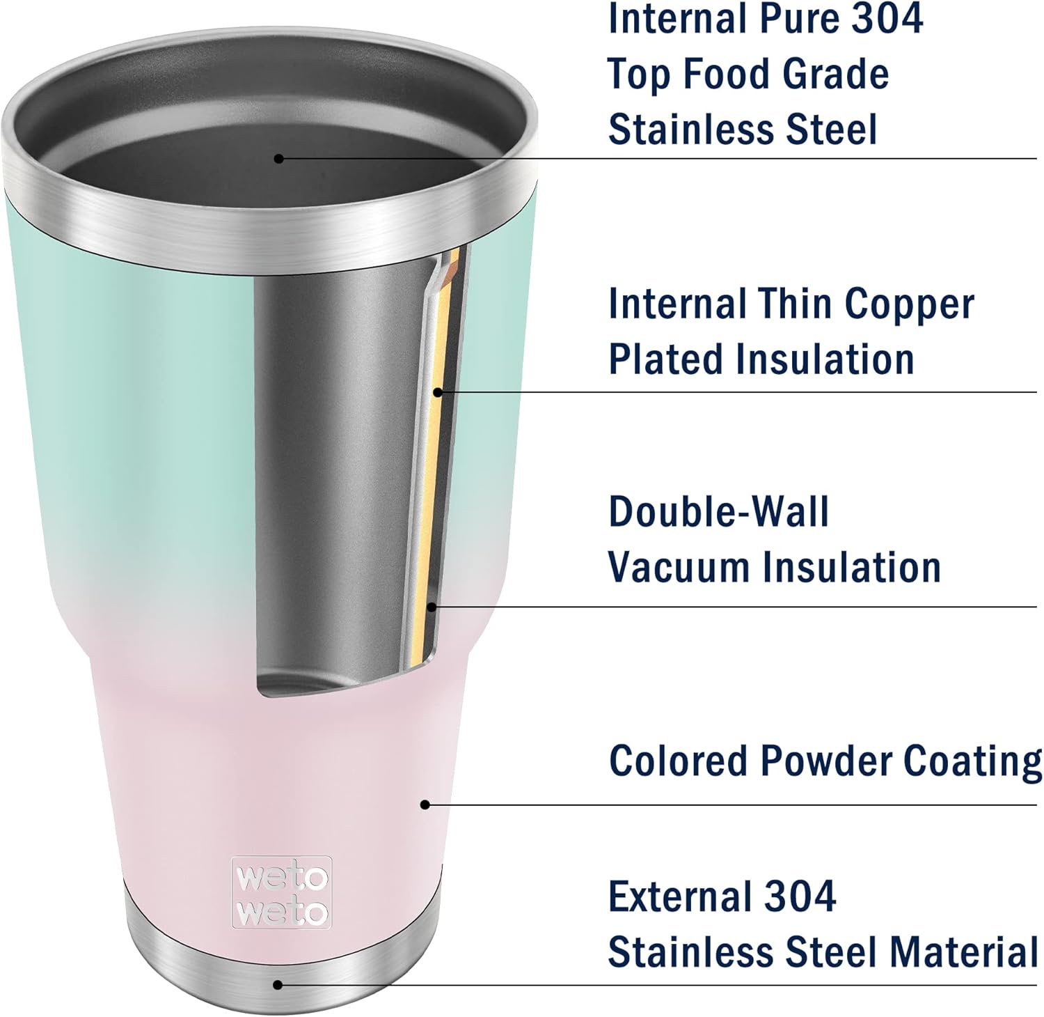 - [ 18/8 Food-Grade Stainless Steel Tumbler ] - Our coffee tumbler is made of high quality 18/8 304 stainless steel. Internal electropolishing, not rust, non-toxic, tasteless. More healthy and durable than the traditional plastic cup, use with confidence.