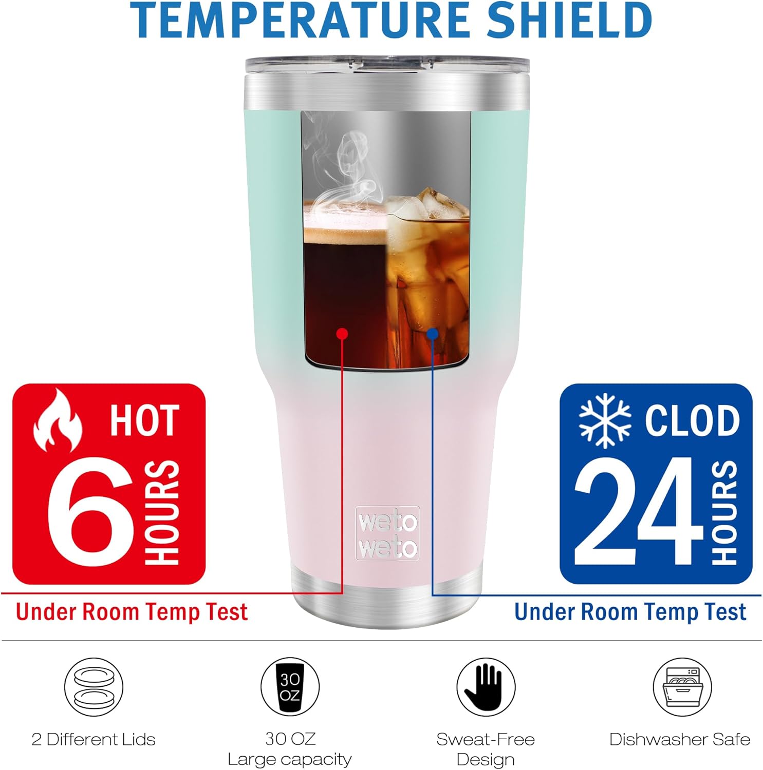 - [ Dishwasher Safe & Easy to Clean ] - The vacuum travel tumbler has a wide mouth, which is very convenient to clean, and can also support dishwasher cleaning, no longer have to worry about the cleaning of the mug anymore. The coffee thermos comes with two lids that are BPA-Free, so you can use them as you like.