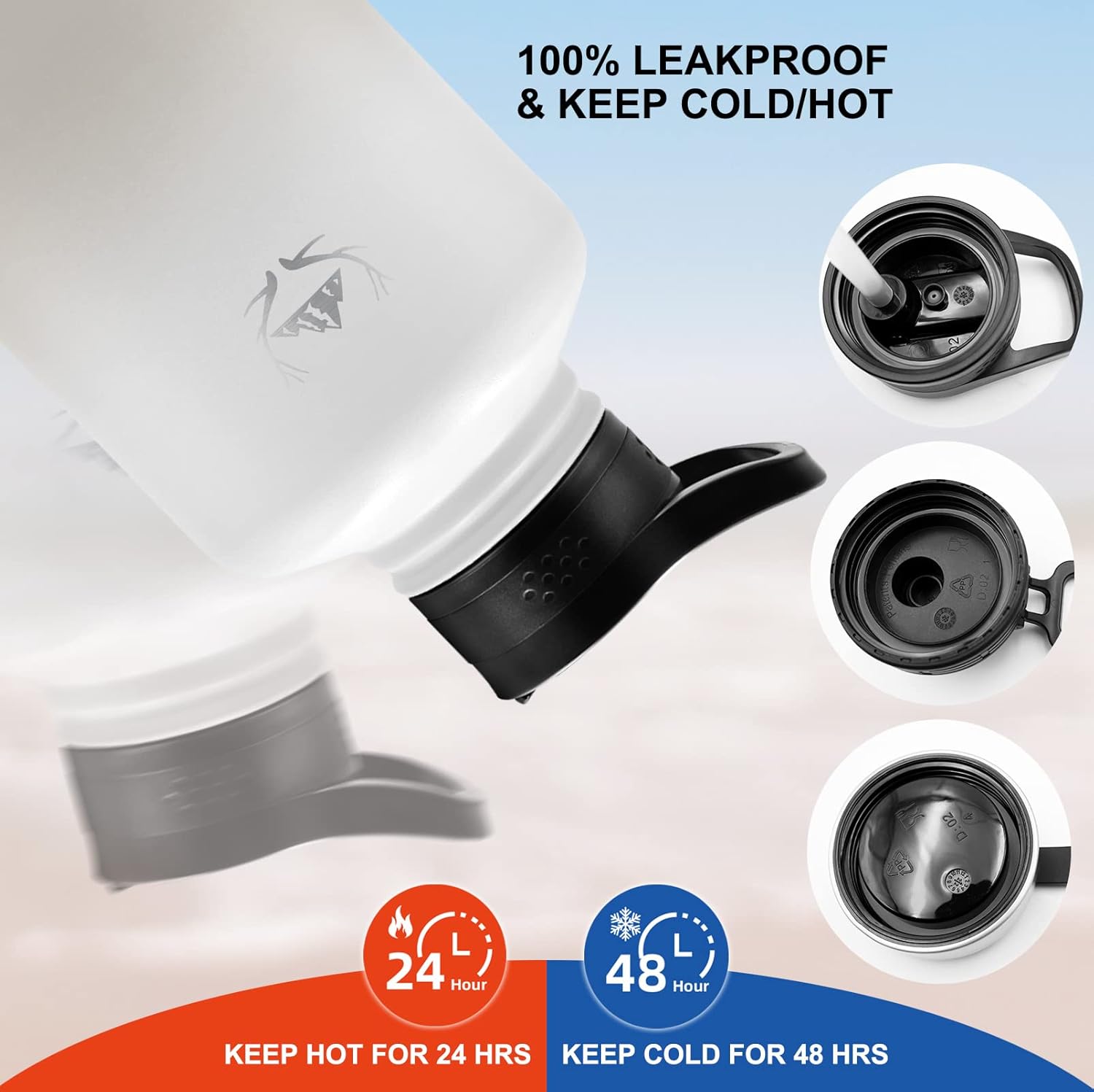 - 【Triple-Layer Vacuum Insulation】 – This insulated water bottle is engineered with triple-wall, vacuum-sealed insulation and made from premium 18/8 food-grade stainless steel. This advanced design locks in temperature, keeping drinks ice-cold for up to 48 hours or steaming hot for up to 24 hours. The no-sweat exterior prevents condensation and protects your hands from heat or frost, making it reliable for outdoor sports, travel, camping, and daily hydration