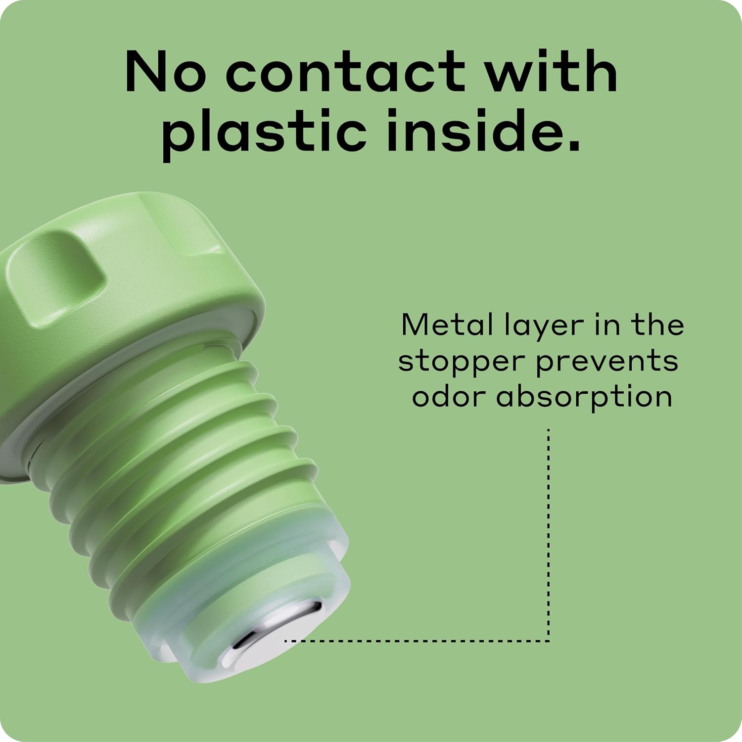 - SAFETY FIRST: 18/8 high grade rust-free stainless steel metal bottle. BPA-free, food-grade steel, food-grade plastic and silicone. Stopper has extra metal layer to prevent odor absorption. Your drink will never touch any plastic.
