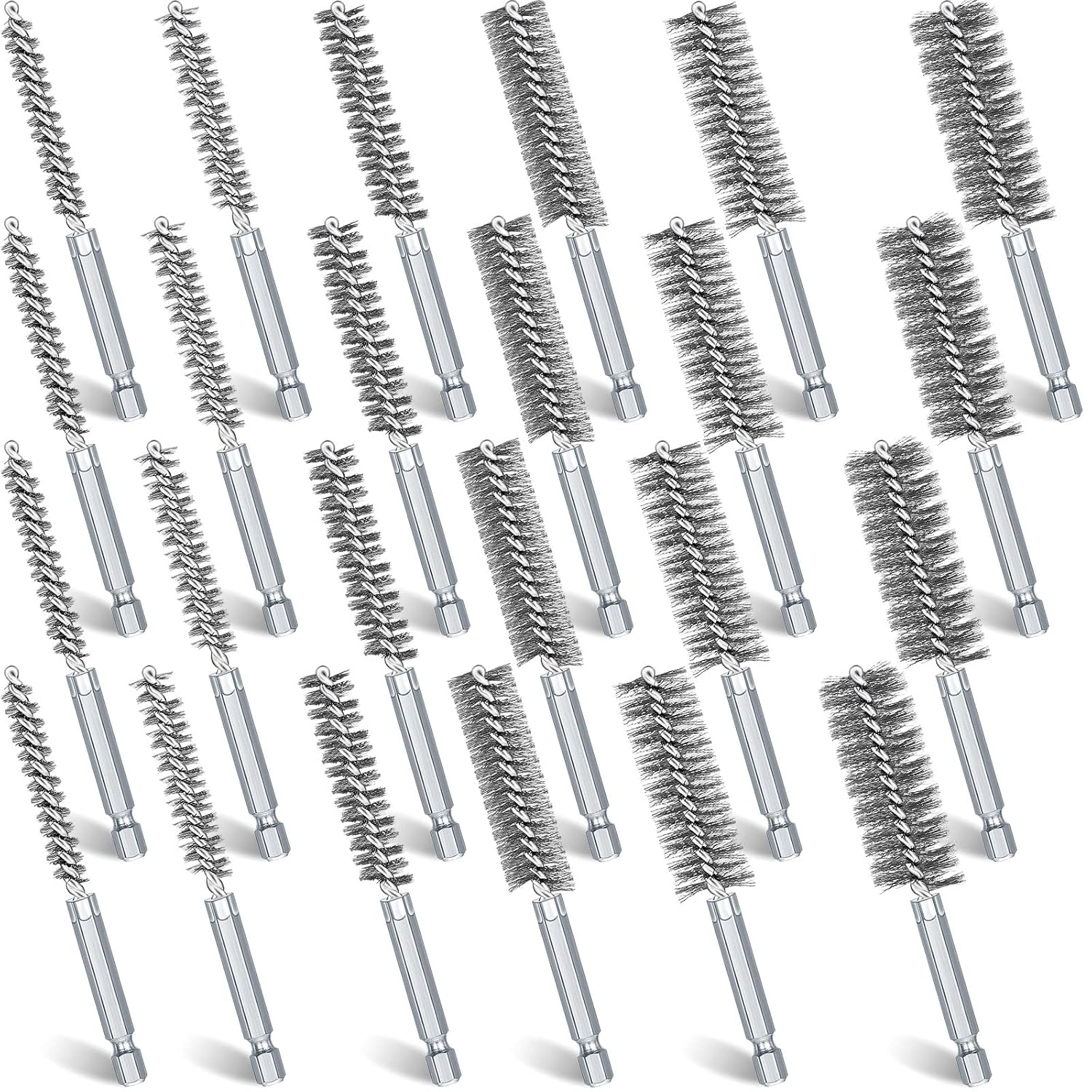 24 Pieces Bore Brush for Drill Wire Bore Brush Set Wire Cleaning Set Stainless Steel Cleaning for Power Drill Impact Driver (Stainless Steel)