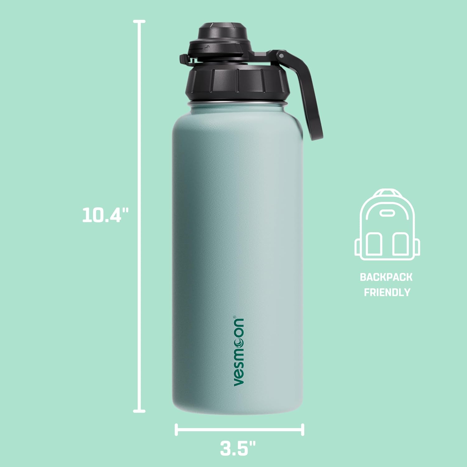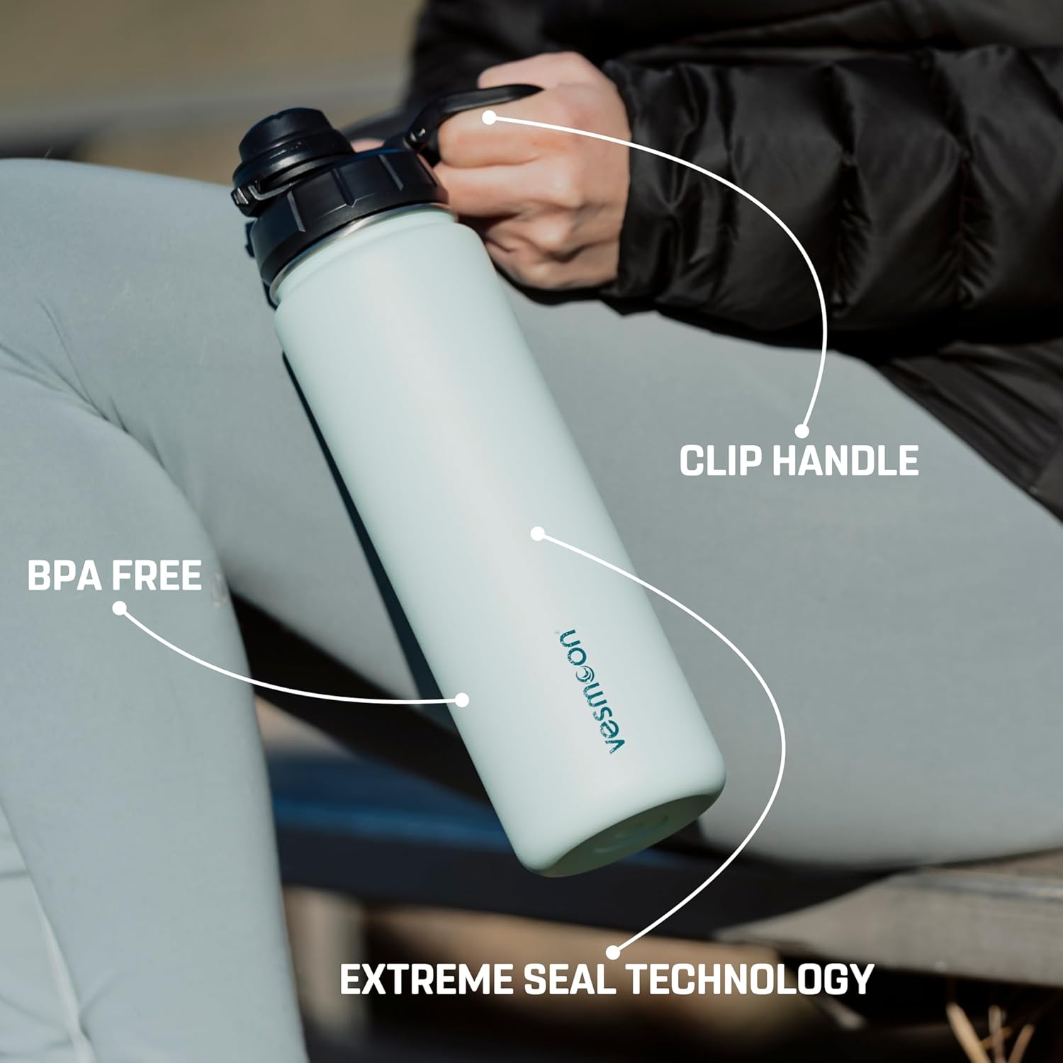 - PREMIUM INSULATED WATER BOTTLE - Vesmoon Vessence are manufactured from high quality sustainable materials that offer great thermal insulation. Unlike conventional thermos water bottles, our triple walled design, keeps your drinks hot or cold for longer and up to 36+ hours it'll surprise you! Our stainless steel water bottle has a wide mouth making cleaning easier.