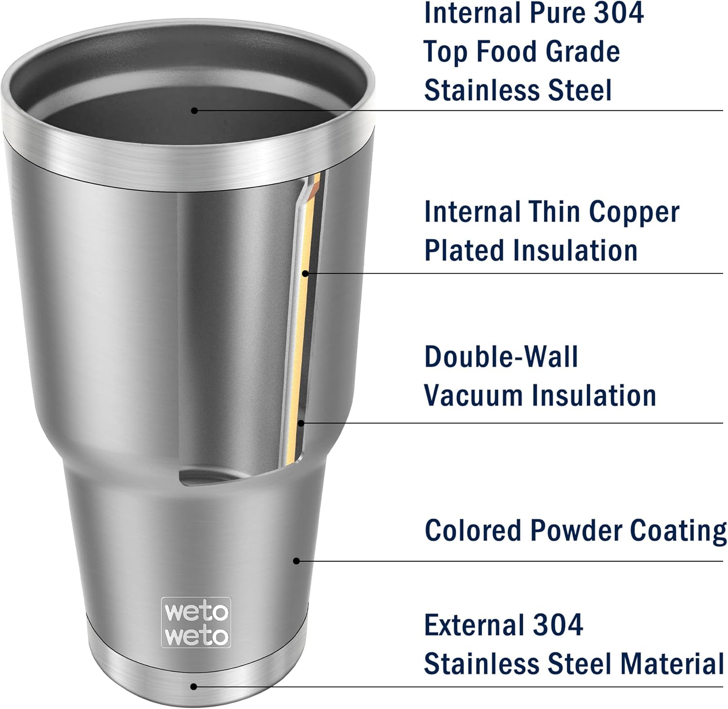 WETOWETO 30 oz Tumbler Stainless Steel Vacuum Insulated Coffee Ice Cup Double Wall Vacuum Coffee Tumbler for Hot and Cold drinks, Suitable for Beach, Travel, Party, Office (Stainless, 1 Pack)