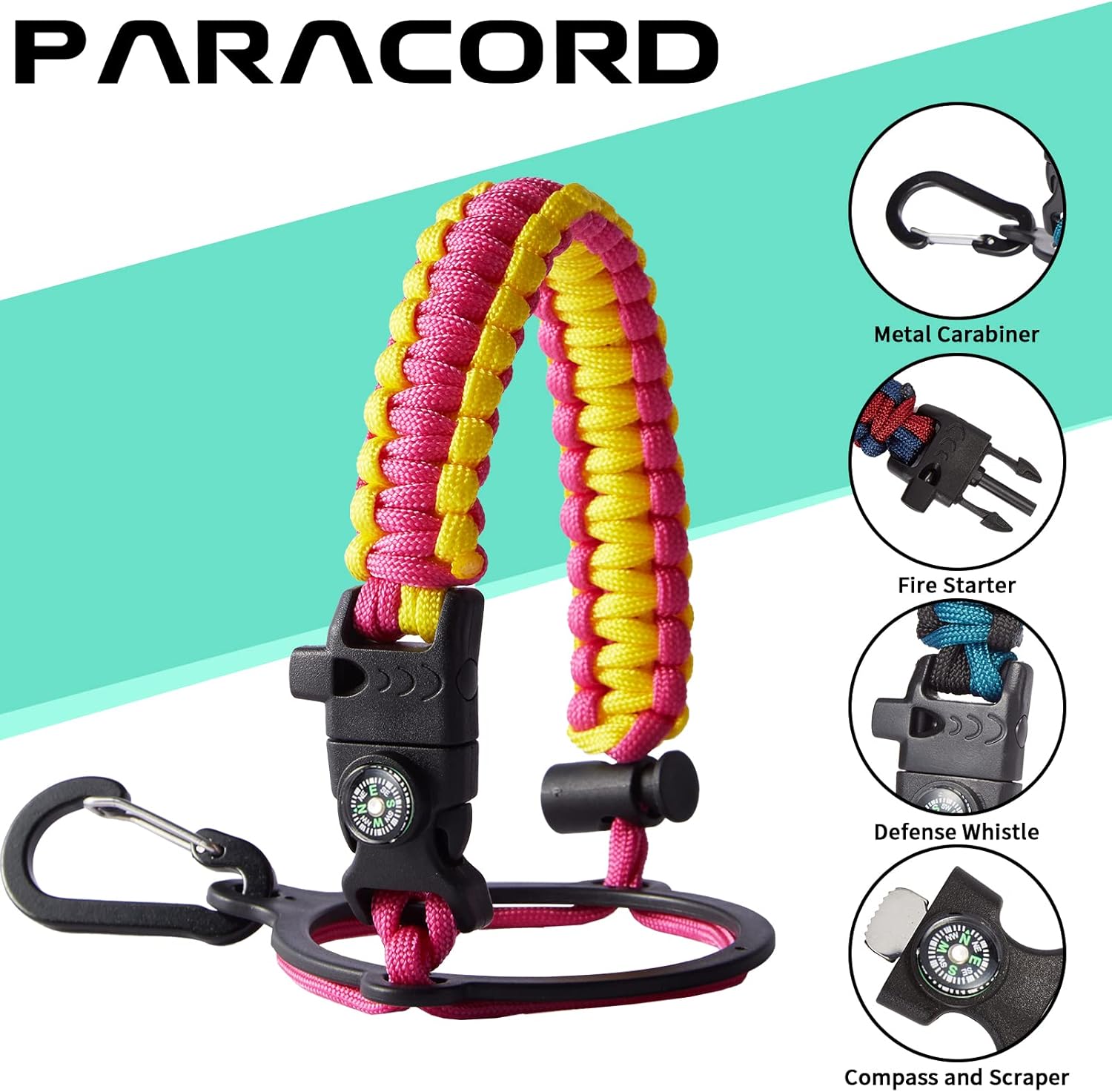 - UNIQUE PARACORD—Perfect Accessories: bright color paracord matches the flask water bottle to give you a youthful vibe while adding a personal style. It comes with a compass, safety loop, metal carabiner, flint, igniter, and whistle to become your survival tool for your wild adventures