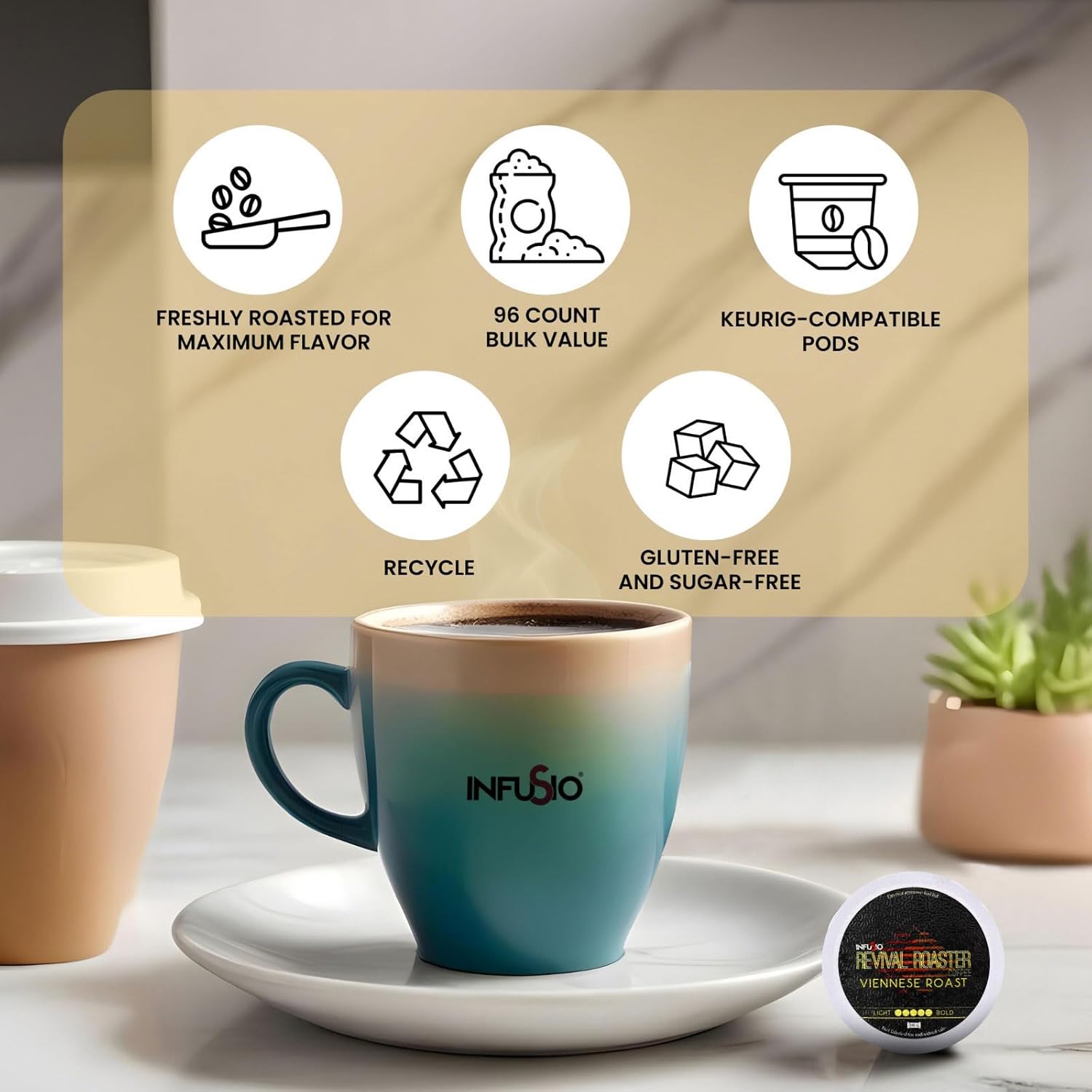 InfuSio Coffee Pods – 96 Count, Viennese Roast (Dark Roast Coffee) Single Serve Coffee Pods for Keurig K Cup® Brewers, Compatible with Keurig 2.0 Brewers