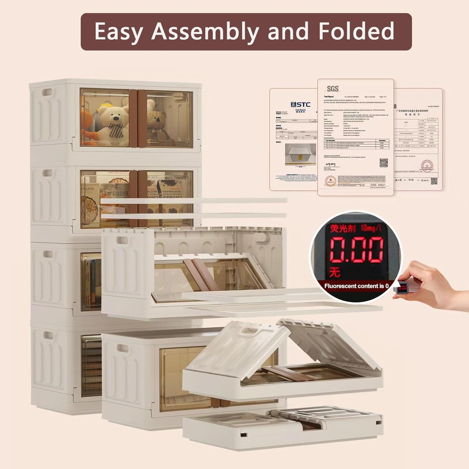 - Quick Assemble & Fold: Our storage containers can be assembled in 1 minute and folds down to 4 inches when not in use, easily tucking under beds/tight spaces—saves 80% of space. Heavy-duty PP plastic (2mm thick walls) supports 110 lbs (50 kg)/pack