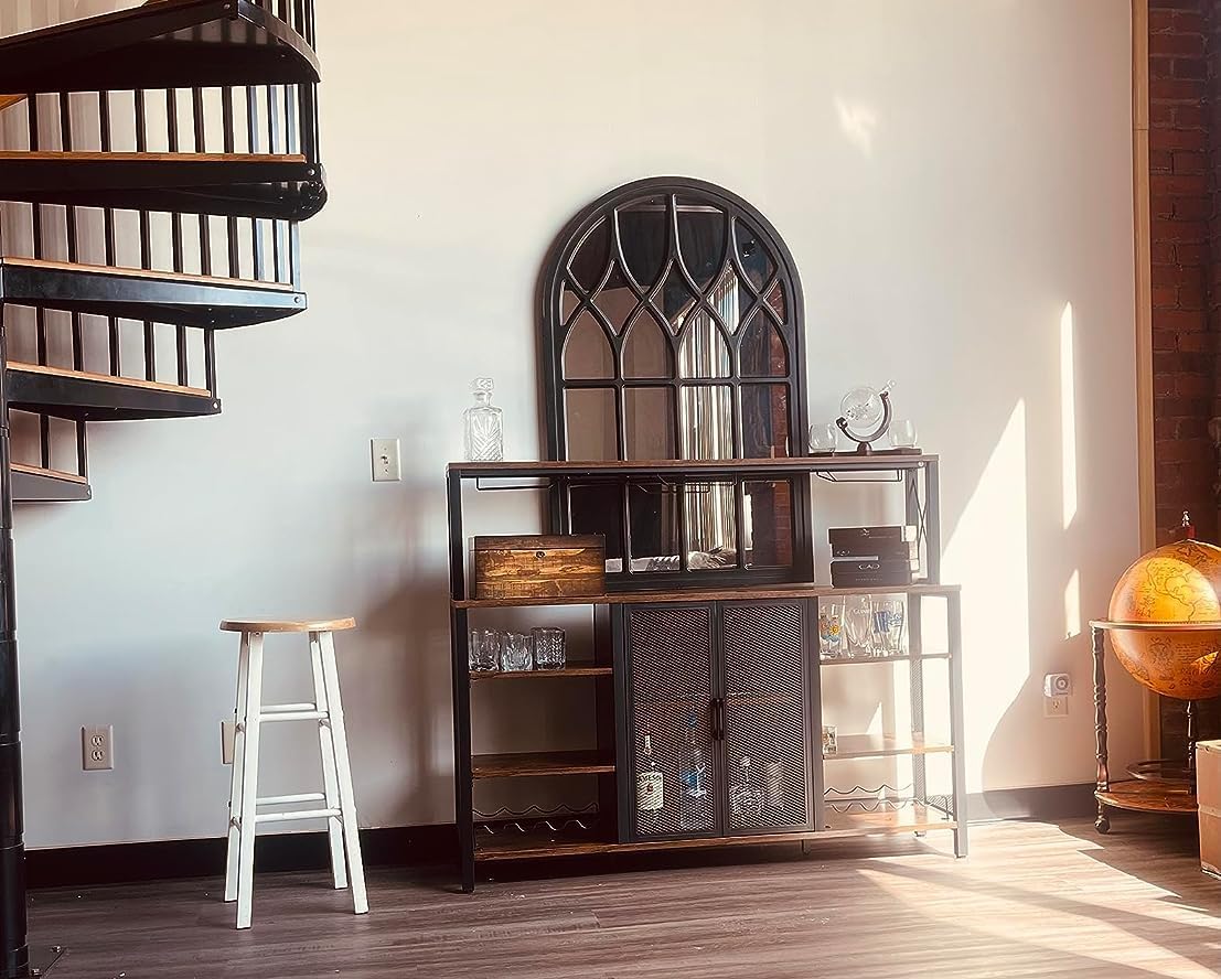 - [ Versatile Wine Bar Cabinet ] - A standout feature of this piece of furniture is its multifunctionality. Complement your home bar with this refined bar cabinet to improve your home decoration industrial style. You can use it as a wine bar cabinet, coffee station, or microwave stand, Kitchen Sideboard Buffet Cabinet, making the most of your living space.
