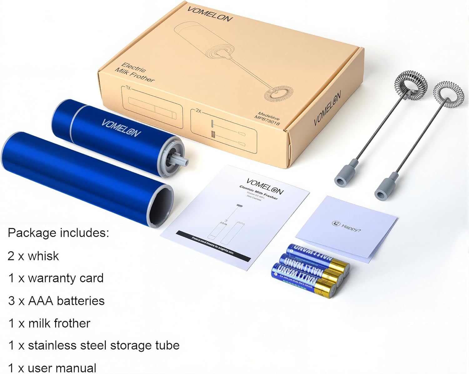 Milk Frother Handheld, Battery Operated Coffee Foamer Drink Mixer with 2 Stainless Steel Electric Whisks for Coffee, Latte, Cappuccino, Hot Chocolate, Protein,Egg Batteries Included,Blue