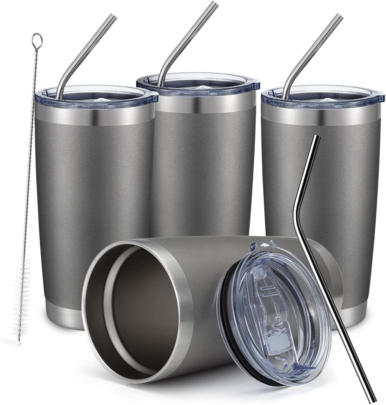 - [Exclusive Bonus Bundle]4*20 oz tumbler with splash-proof slide lid, 4*straw,2*straw brush. The lid is splash-proof and perfect for office, school, trip and picnic. The great value tumbler suit will save your time and money