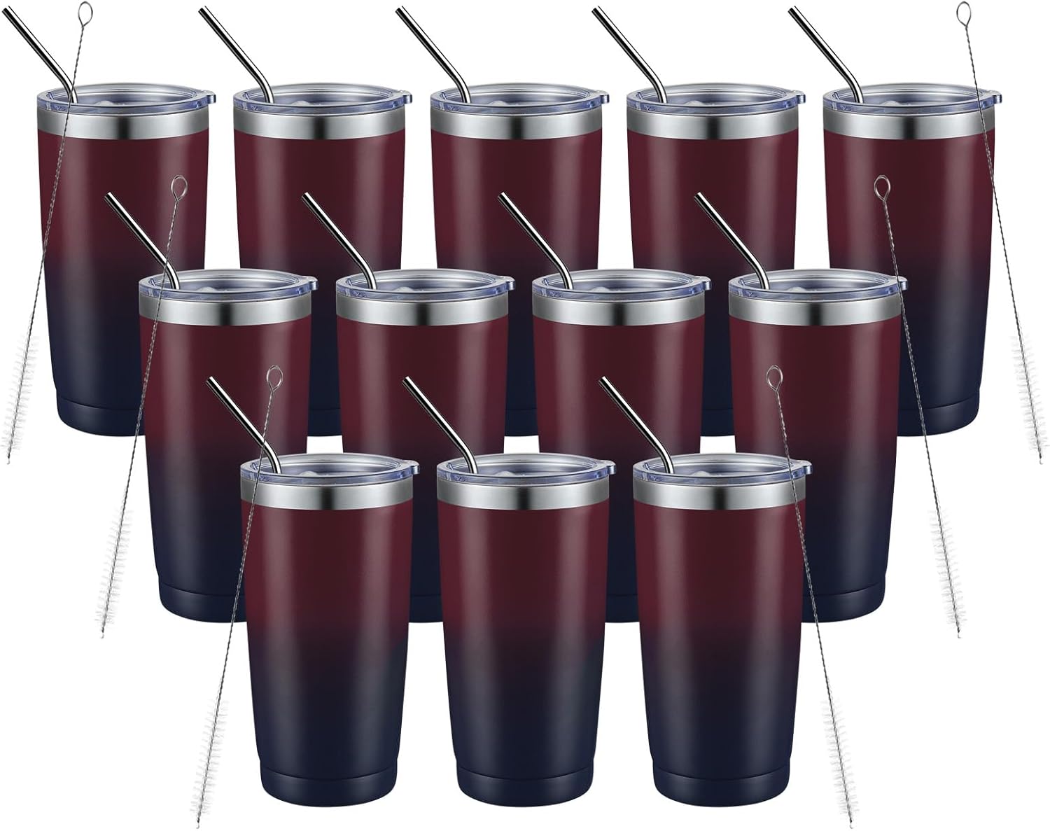 - [Exclusive Bonus Bundle]12*20 oz tumbler with splash-proof slide lid, 12*straw,6*straw brush. The lid is splash-proof and perfect for office, school, trip and picnic. The great value tumbler suit will save your time and money