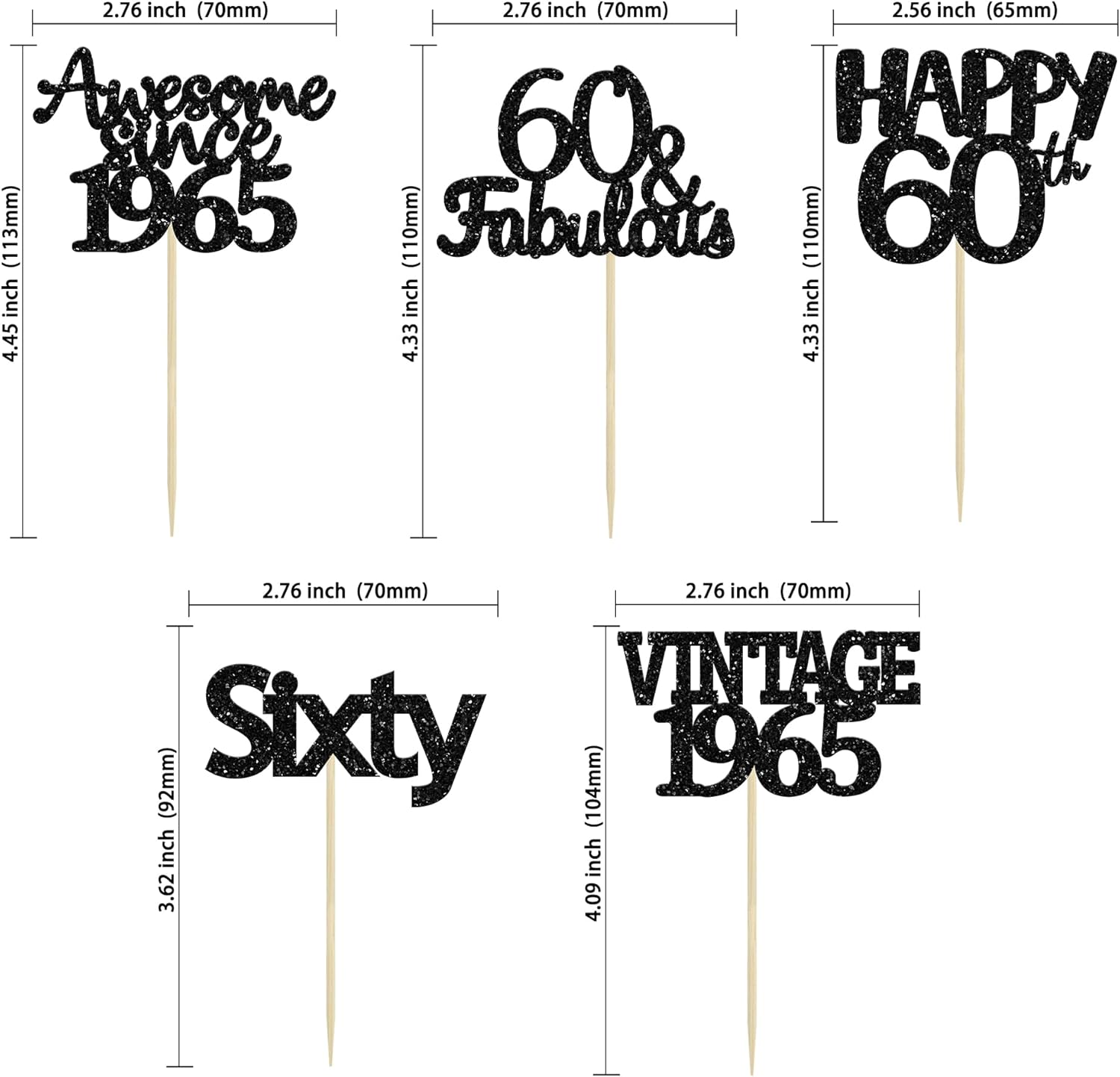 - ♡Premium Material: These glitter 60th Birthday Cupcake Toppers are made of high quality paper and food-grade toothpick, very safe to put them on cakes, cupcakes, ice cream, fruits, pie, dessert, cheese or any dish and food appetizer you want to decorate.