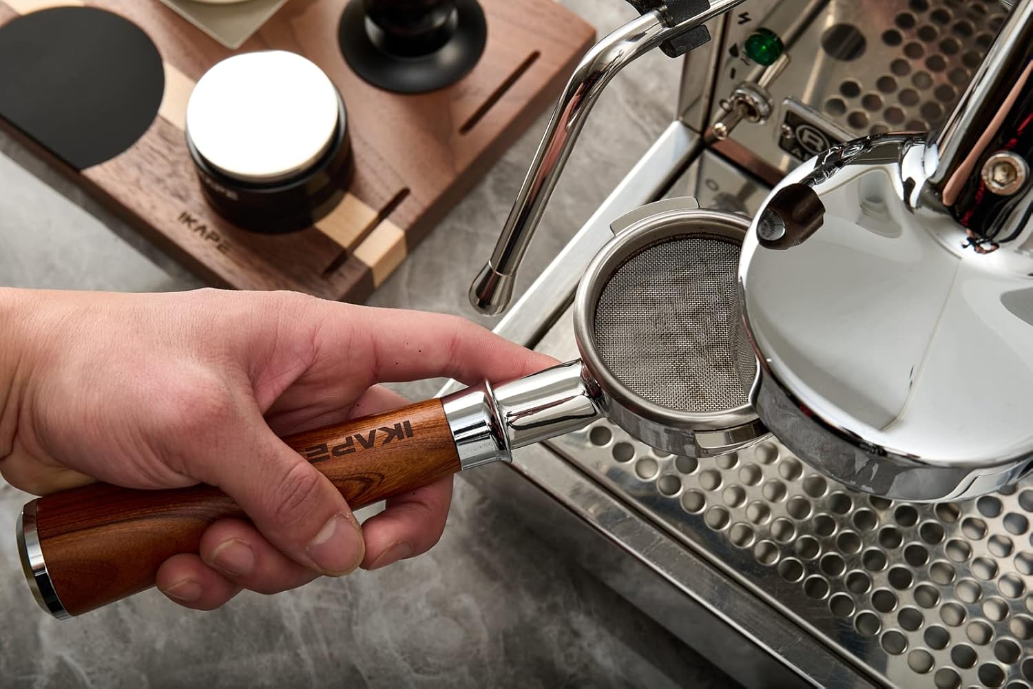 - 💖 Premium Bottomless Portafilter ☕: Be made of 100% natural mahogany, this bottomless portafilter is resistant to oxidation, corrosion, rust, and durability. What's more, its filter basket is cast in food-grade stainless steel, hand-polished to a high degree, and precisely sized to ensure the filter nests into the handle