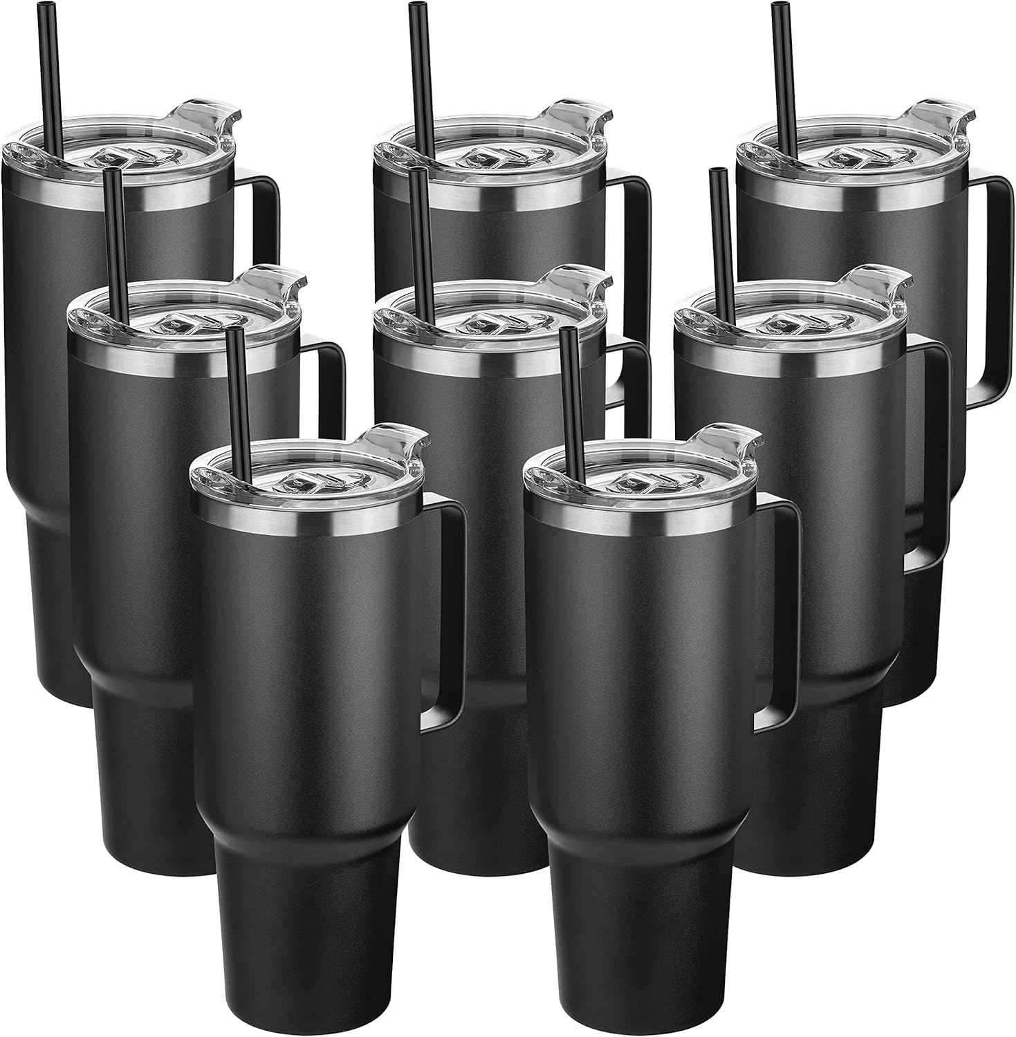 HASLE OUTFITTERS 40 oz Stainless Steel Tumbler with Handle, Vacuum Insulated Tumblers Bulk, Reusable Double Wall Travel Coffee Mug, Durable Powder Coated Water Bottles(Black, 8)