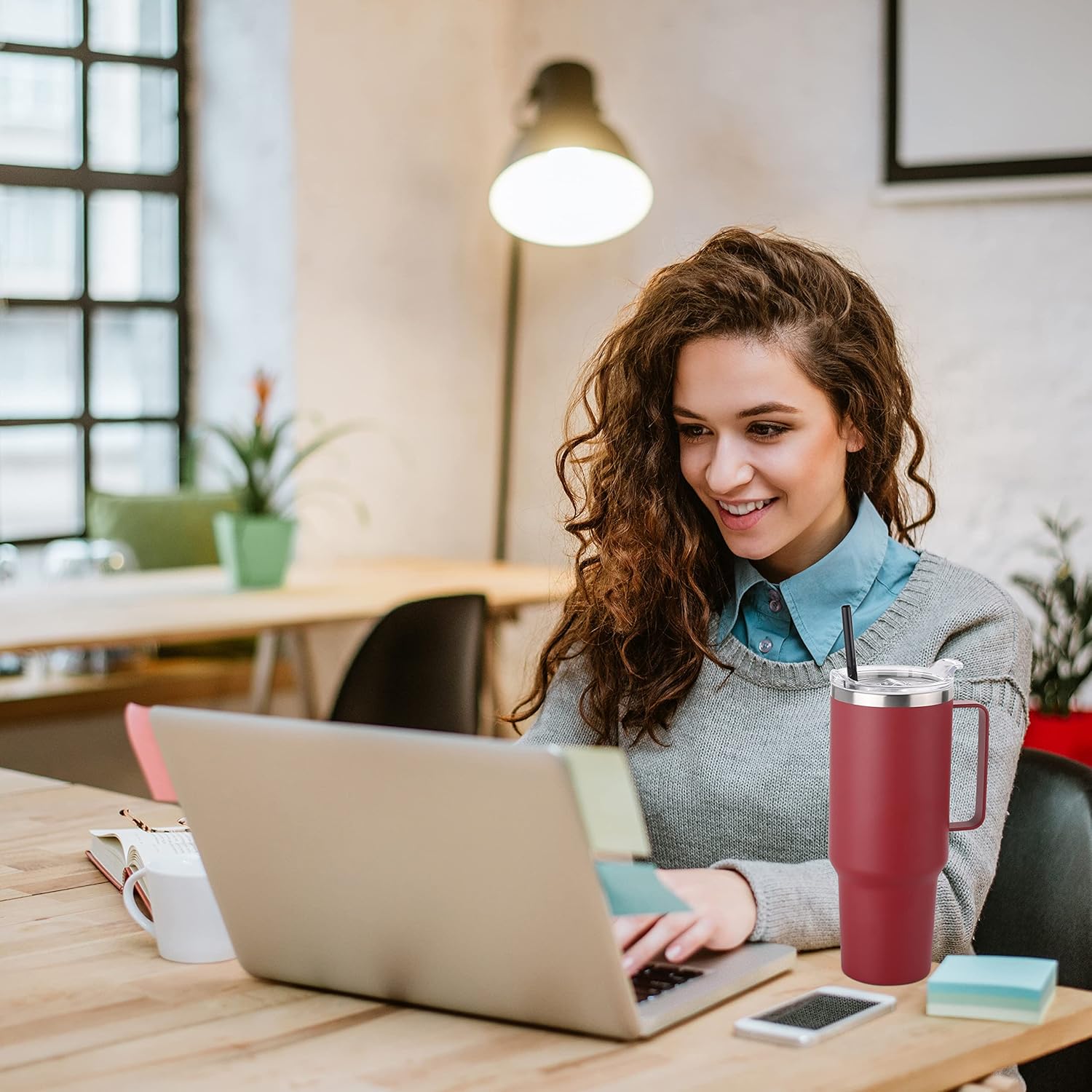 HASLE OUTFITTERS 40 oz Stainless Steel Tumbler with Handle, Vacuum Insulated Tumblers Bulk, Reusable Double Wall Travel Coffee Mug, Durable Powder Coated Water Bottles(Wine Red, 4)