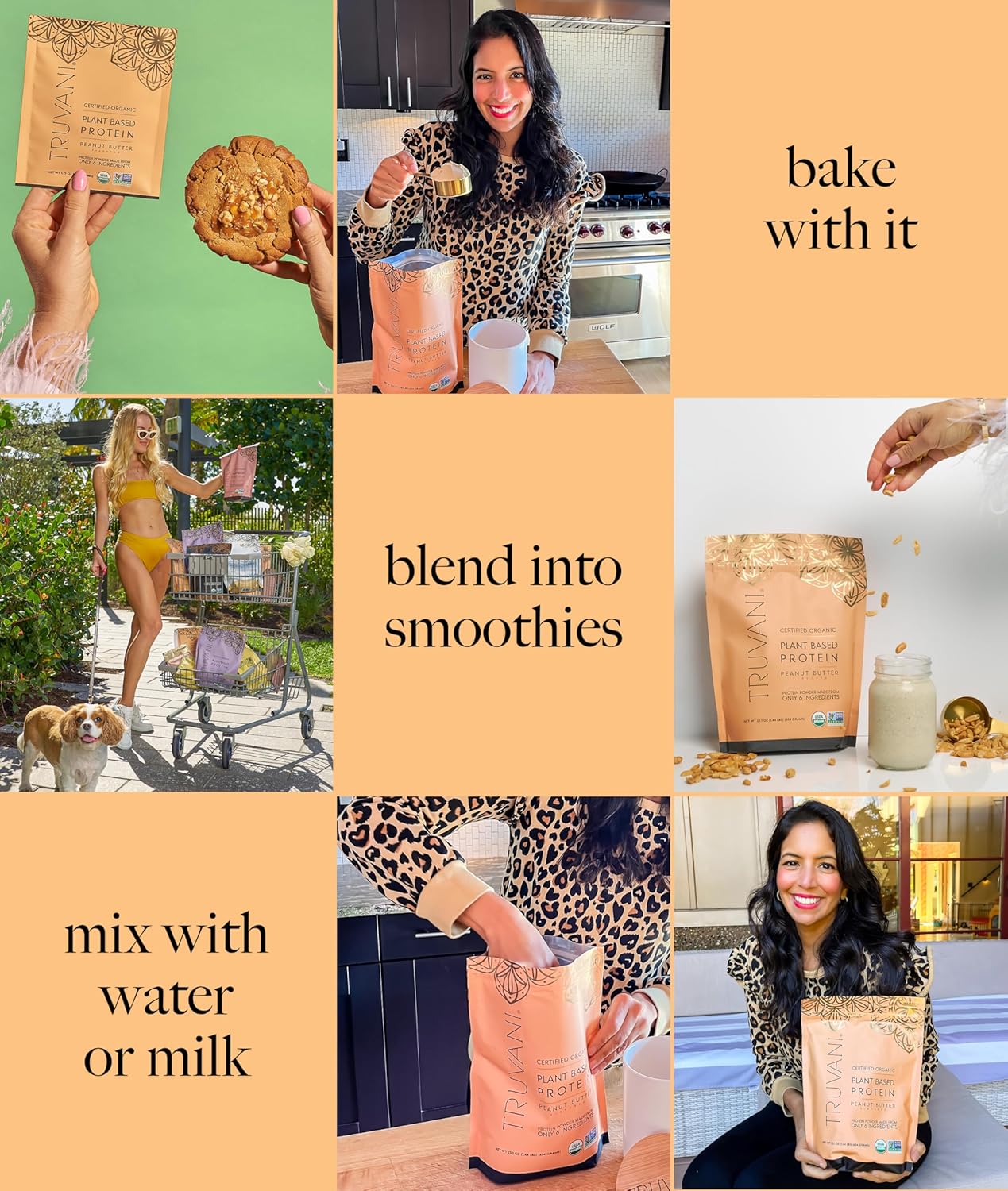 Truvani Vegan Pea Protein Powder | Peanut Butter | 32.7g Organic Plant Based Protein | 1 Serving | Keto | Gluten & Dairy Free | Low Carb | No Added Sugar