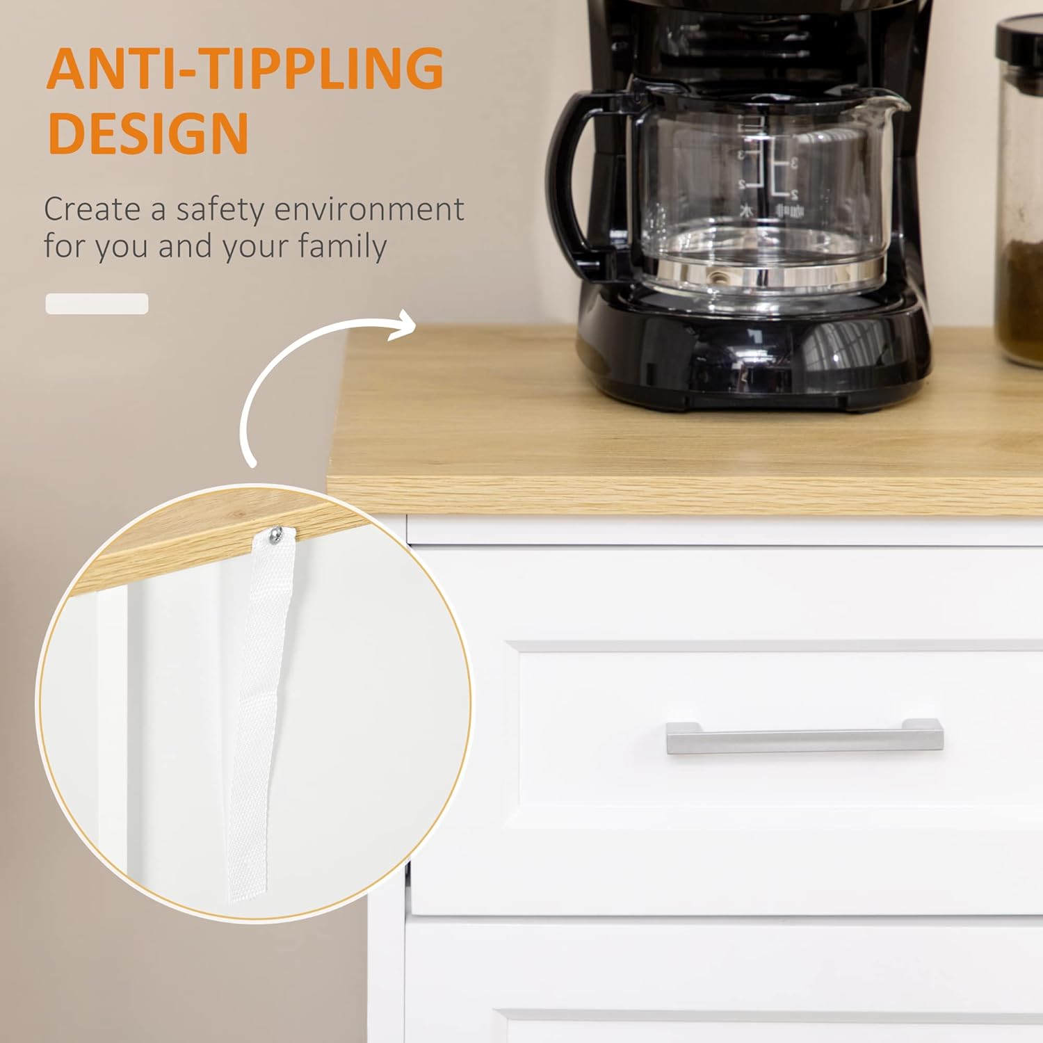 - Safety First: Your home should be a secure place for the family. That is why anti-tipping straps are included so that you can attach the buffet sideboard to the wall.