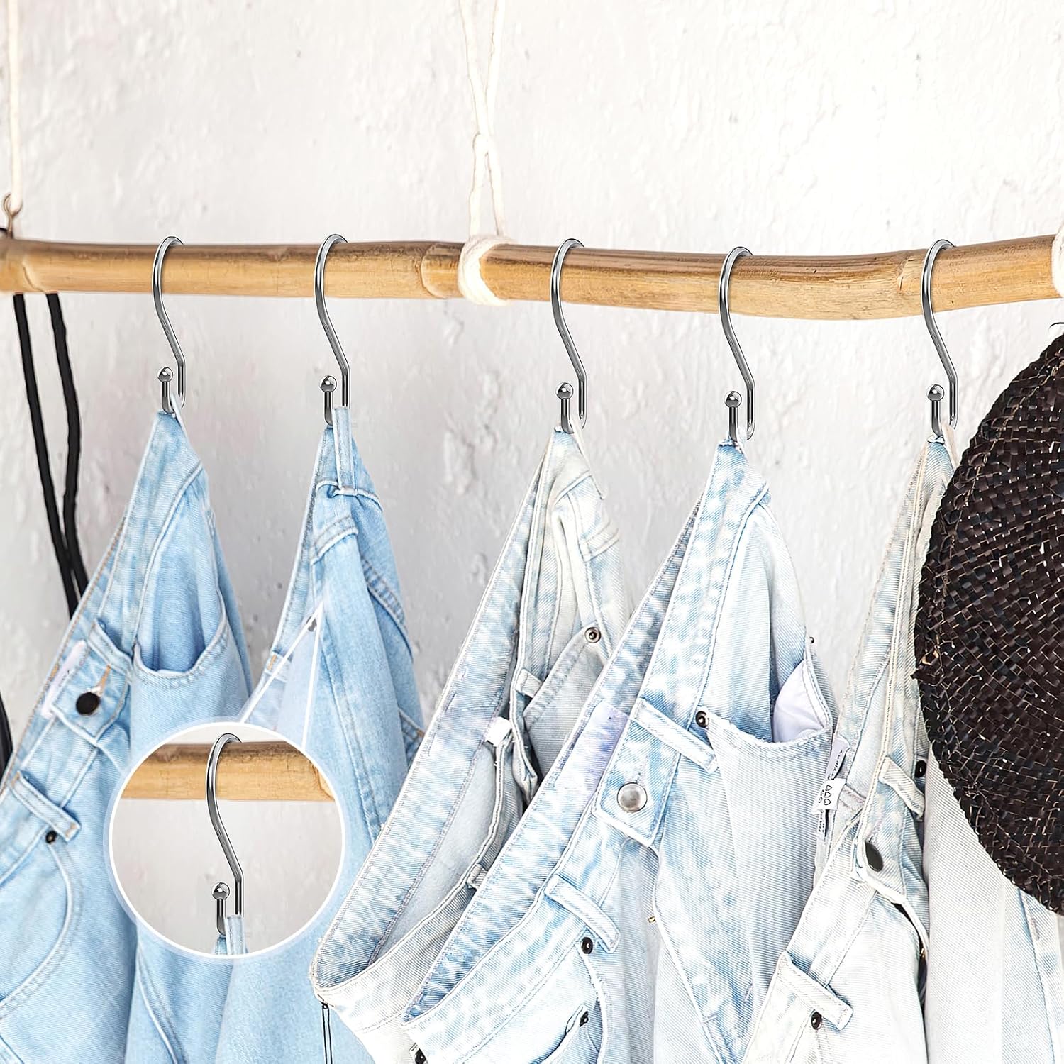 - Reversible Use: Designed with 2 different shapes and sizes at the both ends; the S curve diameter (1.4 in) accommodates a thicker rod; while the U curve diameter (0.8 in) is small, accommodates a finer rod and stay put better; flexible to use it for hanging different items
