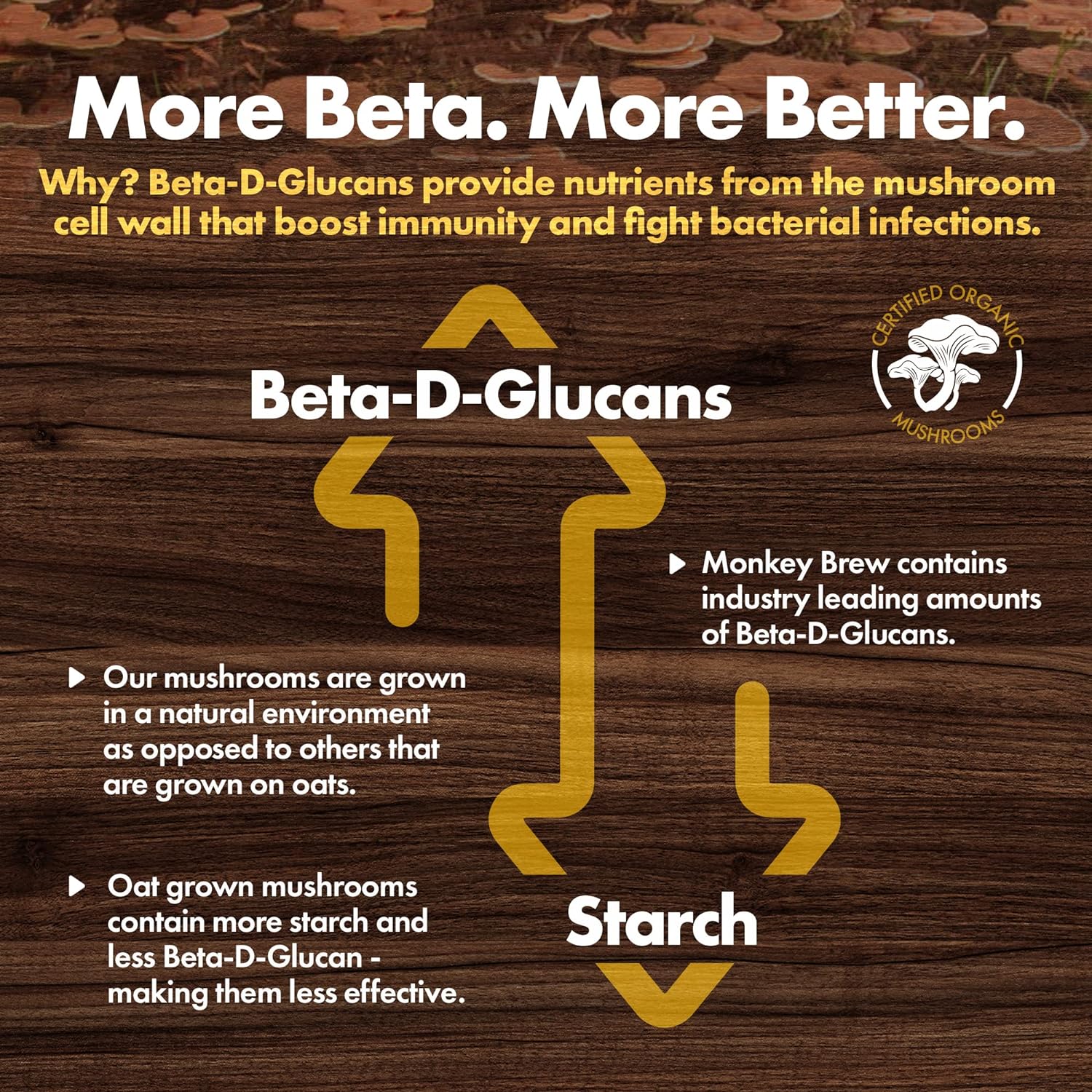 - 1,200 mg ADAPTOGENIC BLEND – 100% FRUITING-BODY MUSHROOMS - Crafted with USDA organic Lions Mane, Cordyceps, Turkey Tail, and Maitake—wood-grown and fruiting body only—for high beta-glucan (healthy nutrients) content. This nootropic blend supports focus, clean energy, immune function, digestion, and clarity without grain fillers or mycelium.
