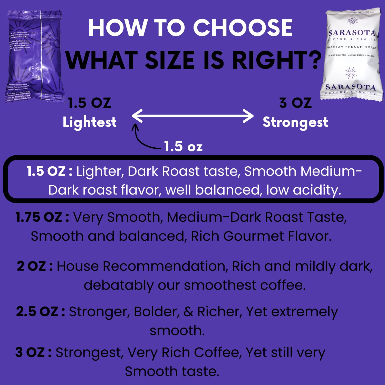 Sarasota Coffee Ground Packets | Low Acid Dark Roast Ground Coffee Packs | European French Roast | Mold Free Singles | Ground Pouches | Individual Packets for 12 Cup Coffee Maker | 1.5 Ounce Bags, 42 Count
