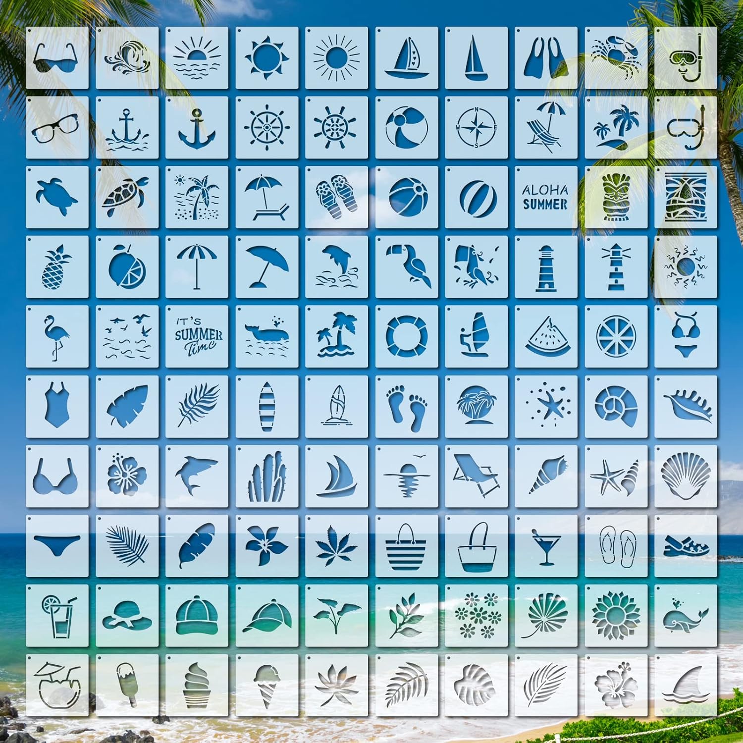 100 Pcs Stencils for Painting on Wood Reusable Stencil Crafts Drawing Templates Holiday Wall Paper for DIY Scrapbook Home 2 x 2 Inch(Hawaiian Style)