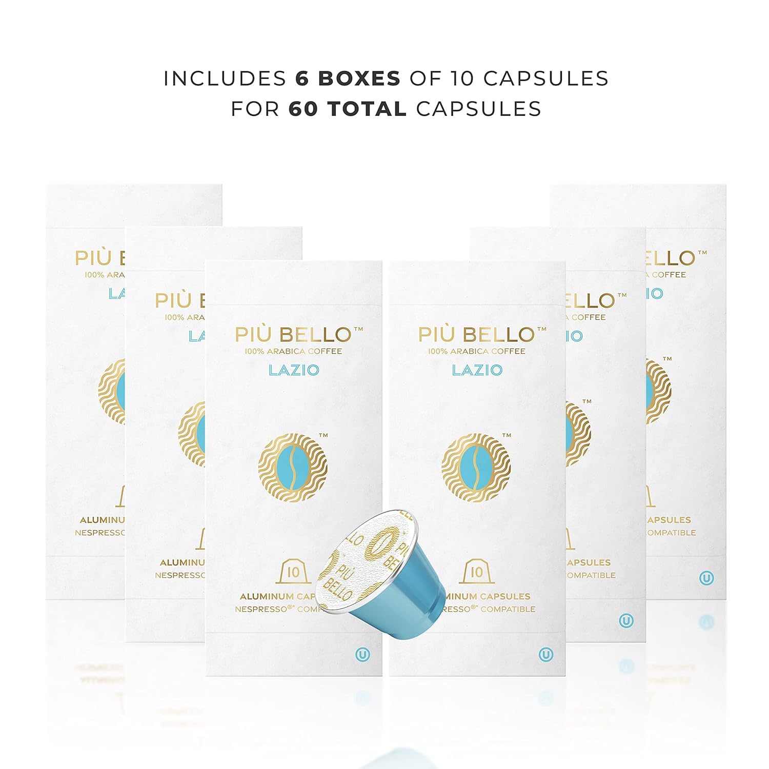 Piu Bello Lazio Espresso Coffee Pods – for Nespresso Original Machines – Compatible Capsules Pack – Rich & Balanced Taste – Strong Italian Espresso Flavor – Kosher Certified (60 Count, Single Flavor)