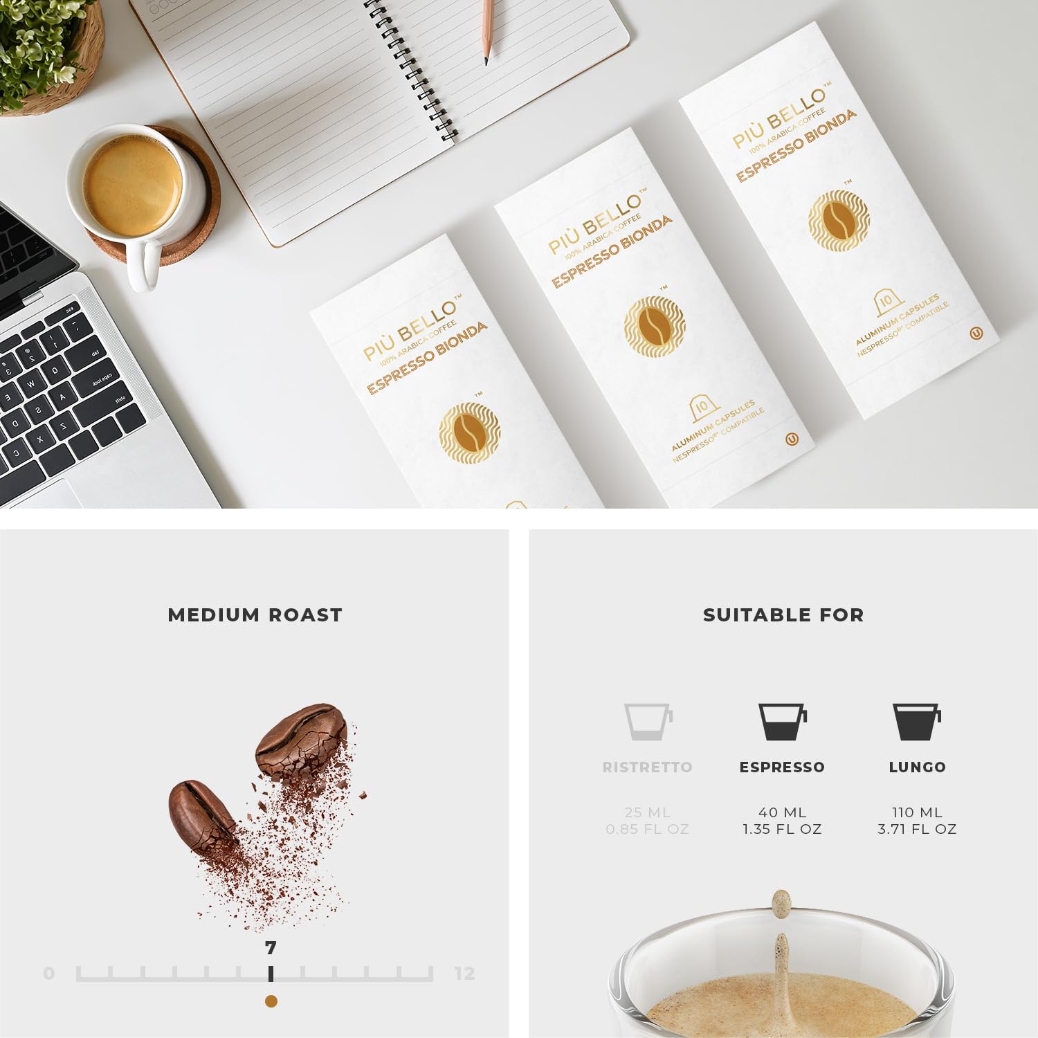 Piu Bello Coffee Pods - Nespresso Machine (Original) Compatible Capsules Pack - Rich & Balanced Taste - Strong Italian Espresso Flavored - Kosher Certified (120 Count Single Flavor) (Espresso Bionda)