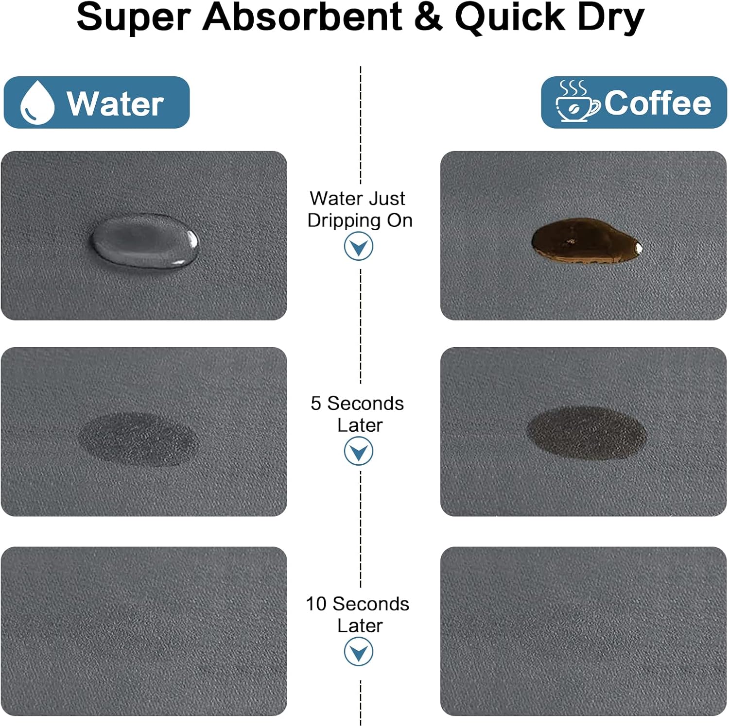 - 🍹【Widely Usage】The coffee drying mat can not only be used under the coffee machine, but also can use it under water filters, dish strainer, water distillation machine, ice maker, or as a pet peeding mat, etc. With its super water absorption and quickly drying properties, we can widely use it in the drying mat of countertop, kitchen cabinet, bathroom cabinet, room table, blender, water dispenser, dishwasher, tableware, cup, etc.