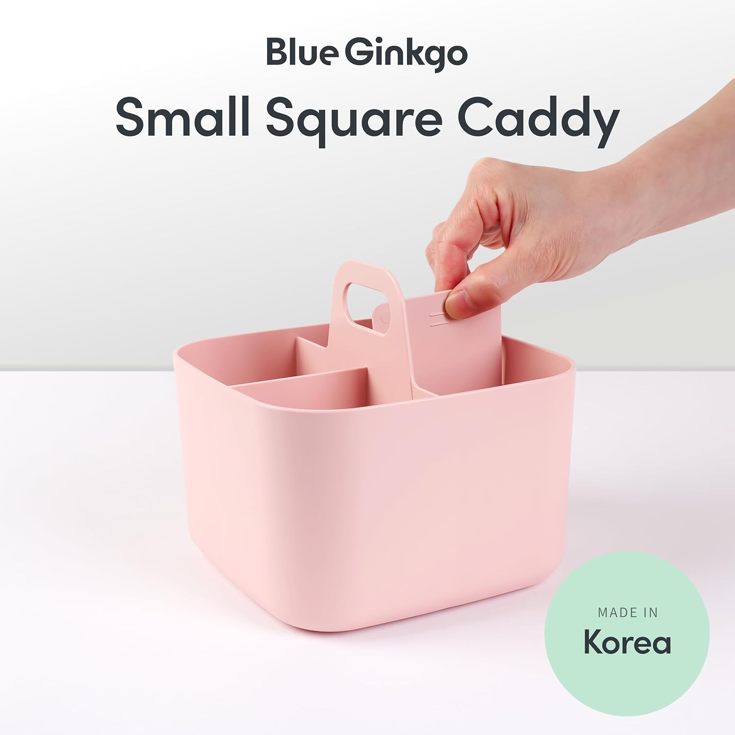 BLUE GINKGO Small Stackable Organizer Caddy – Korean-Made Portable Tote for Bathroom, Office, Crafts, or School Supplies (Square, Pink)