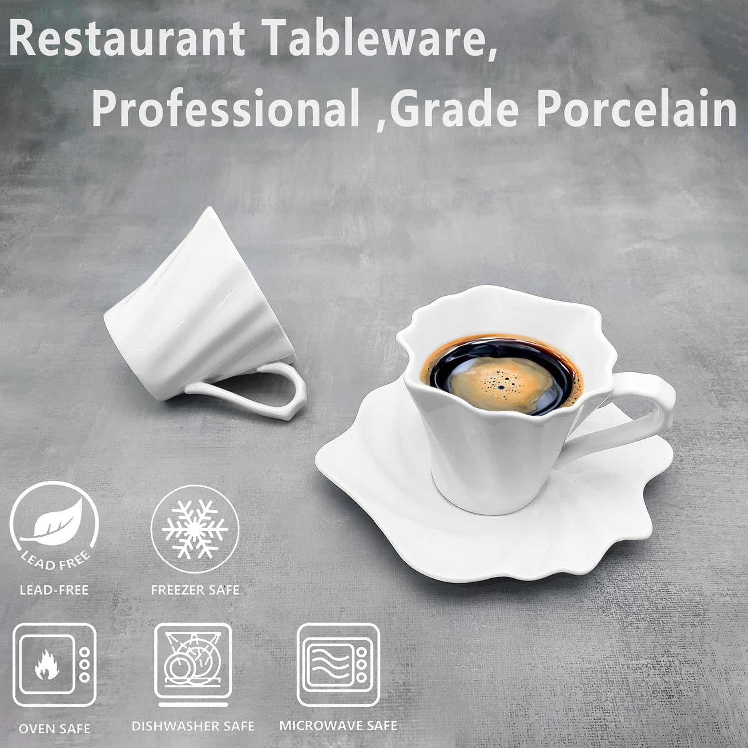 - With a volume of 4.5 oz, the espresso cup set is ideal for an espresso, double espresso, ristretto or lungo.These espresso cups are made of durable porcelain, a type of premium LEAD-FREE, and can be used for dishwasher, microwave, oven and freezer.