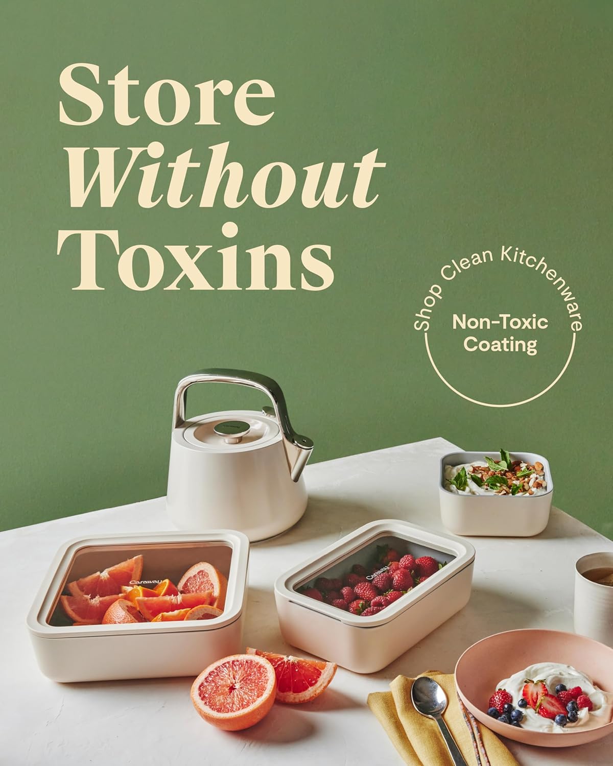 - KEEP YOUR FOOD FRESH: Look forward to leftovers with Caraway’s easy-to-store, non-toxic food storage containers. This 10 cup glass container was designed to be displayed and keeps your food fresh & organized.