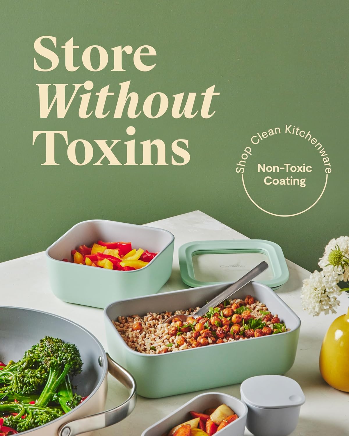 - BEAUTIFULLY DESIGNED: The cleanest, best-looking approach to storing your food. Our glass container features a clear glass lid for easy viewing Each container comes in modern colors that will match with your entire Caraway collection.