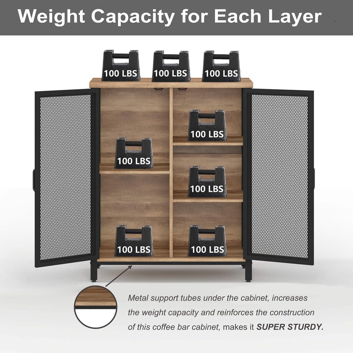 - 36" Height Versatile and Practical Storage Cabinet: There are endless possibilities with this coffee bar cabinet to maximize your space. A 29 inch wide spacious cabinet top offers a perfect place to set up coffee maker and cups, while 3 lower adjustable display shelves offer plenty of storage space for your living room, kitchen, entryway or dining room essentials to meet the needs of storage items of different sizes.
