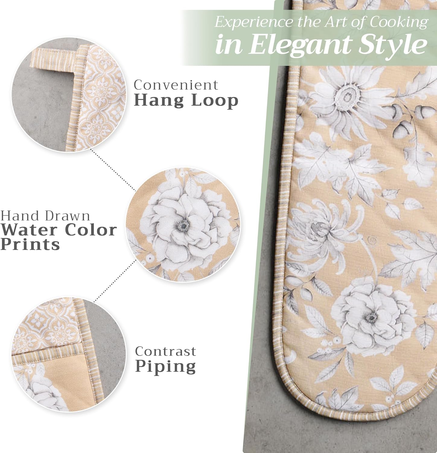 Maison d' Hermine Double Oven Mitts 100% Cotton 7"x35" Double Oven Mitt Heat Resistant BBQ Cooking Gloves with Loop, Baking, Grilling, Home, Kitchen, Handling Hot Pans (Pretty Autumn)