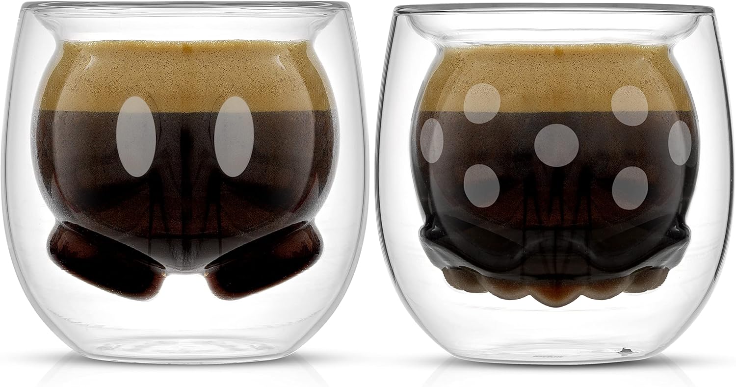 JoyJolt Mickey Pants and Minnie Skirt 3D 2oz Espresso Cups. Double Walled Espresso Glasses (2pc) Small Double Wall Glass Coffee Cups. Demitasse Cups, Espresso Measuring Cup or Liqueur Shot Glasses