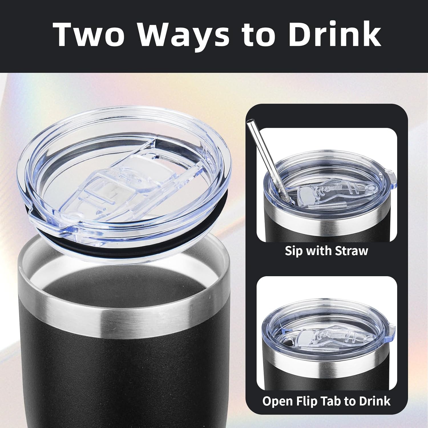 - đ„€ăPacking Listă: 20oz insulated coffee tumbler with leak-proof lid, two stainless steel straws (one curved and one straight), straw cleaning brush is a great addition (HAND WASH RECOMMENDED). Best for home, office, camping, vacation, sports, travel, etc