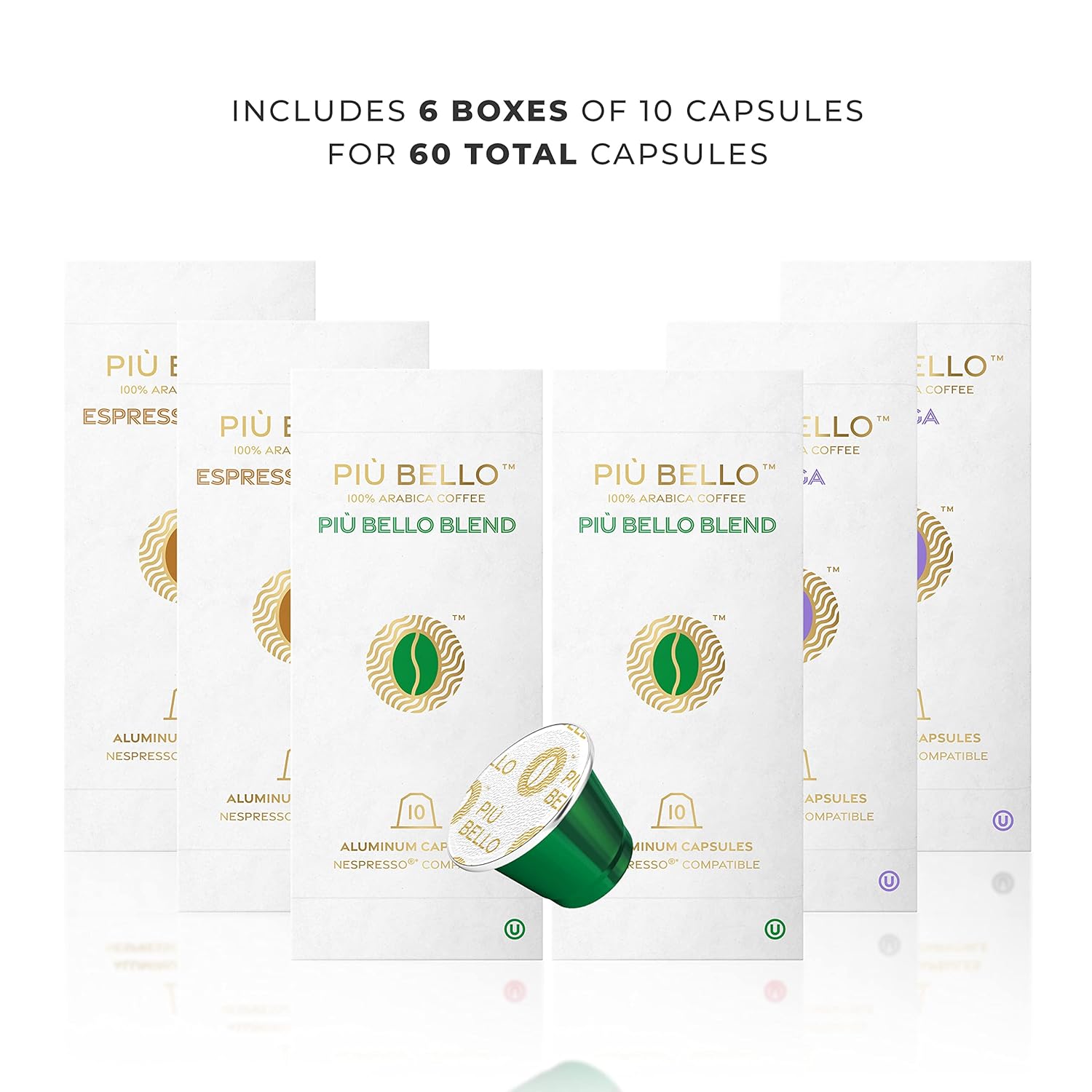 - NESPRESSO COMPATIBLE PODS - Enjoy delicious cafe quality roasted coffee, brewed fast and poured steaming hot & fresh directly into your awaiting cup. Piu Bello capsules are compatible with Nespresso Original line espresso machine.